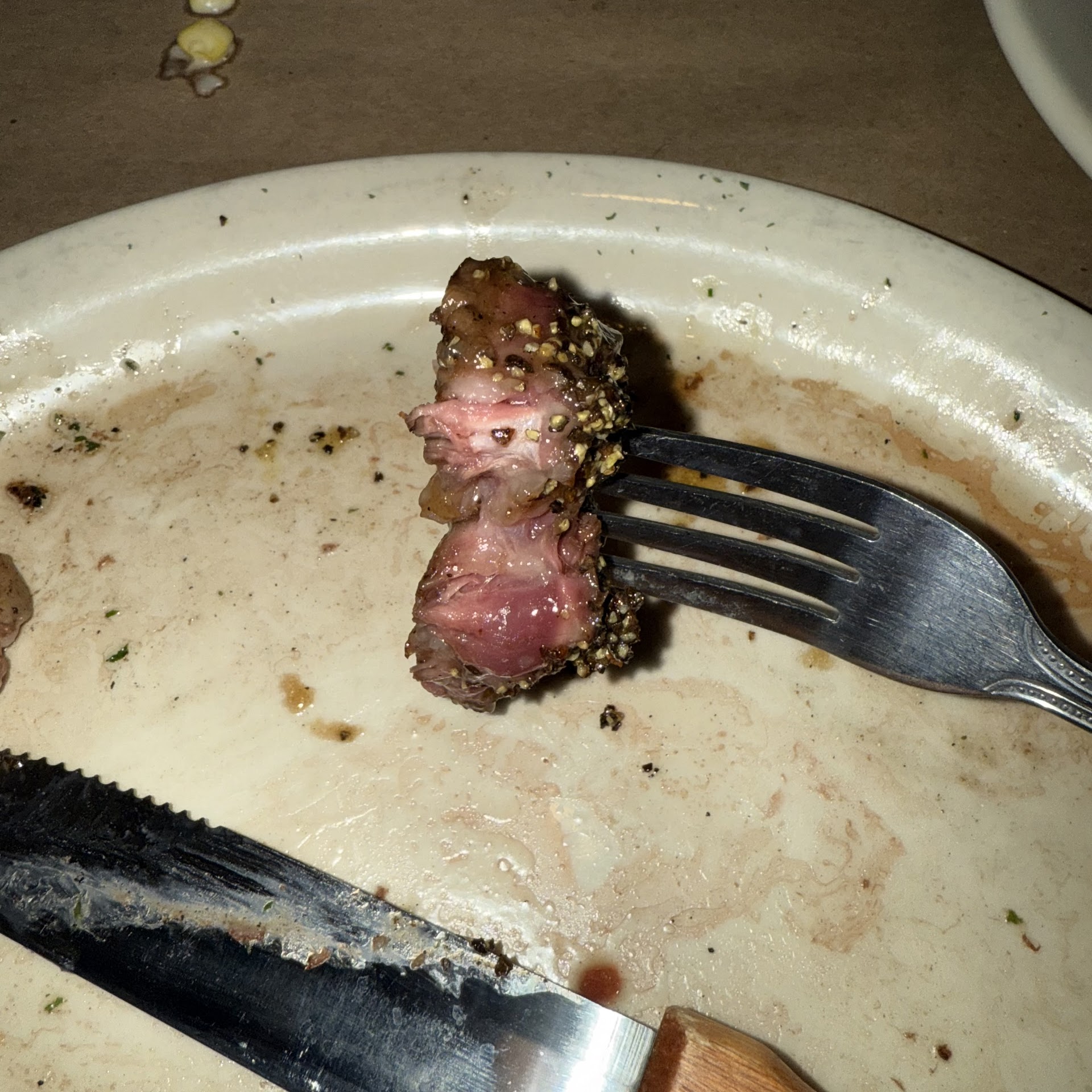 Very cool atmosphere, kind of a cool collection of old western/70’s steakhouse decor cover the walls of the place. Has a small bar area, and live music on most nights. The guy playing tonight (Scubba Steve) was very good. However, our table ended up near the stage area and it was loud enough that it was hard to have a conversation. Wasn’t his fault, it was just a proximity of the table to their sound gear. Maybe install some sound gear up higher to keep the ambiance without the volume level?