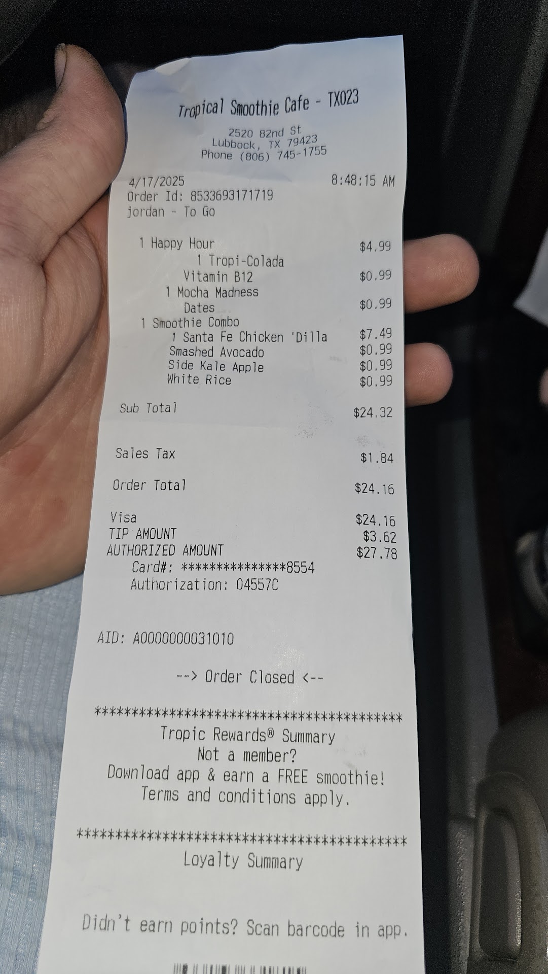 Read moreToday tropical cafe has officially lost my business! I went back today even though they messed up my order last time. When it was my turn to order I told the lady that a few days ago I came and got a quesadilla and they didn't add the salsa dip like they were supposed to and it had no cheese just chicken. Her answer was that maybe the people working that day didn't know it was supposed to have it!!! She didn't try to fix there mistake or anything. Noted this is the second time this has happened to me in a months time. Then my Bf and his coworkers smoothies had chunks of ice in them, but maybe the employee working today didn't know they had to be blended all the way either! !! Keva juice...