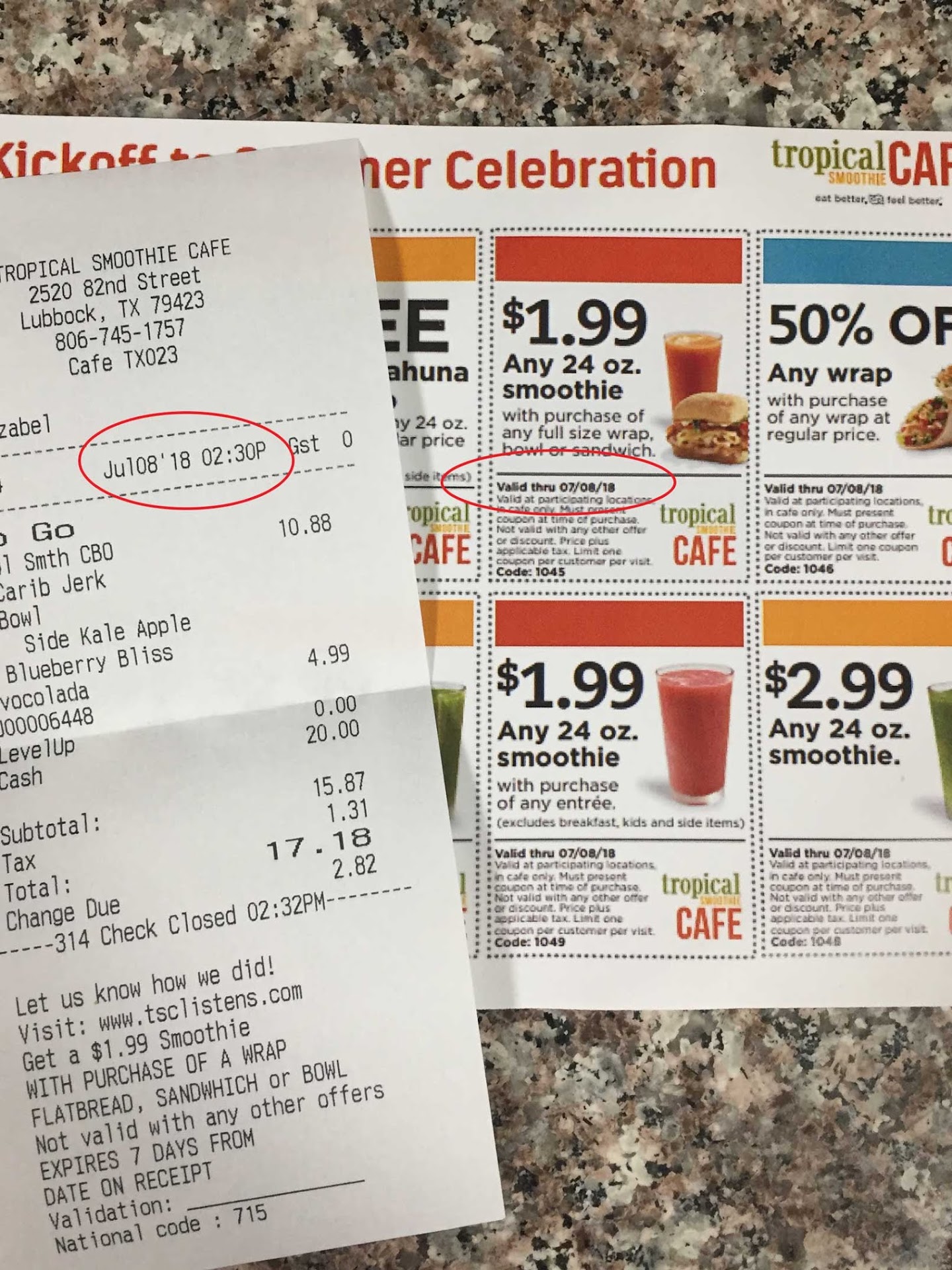 I went in Sunday afternoon at 2:30. They gave me all these amazing coupons... that expired that day. It would have been nice to let me use one before I cashed out... or just didn't give them to me!