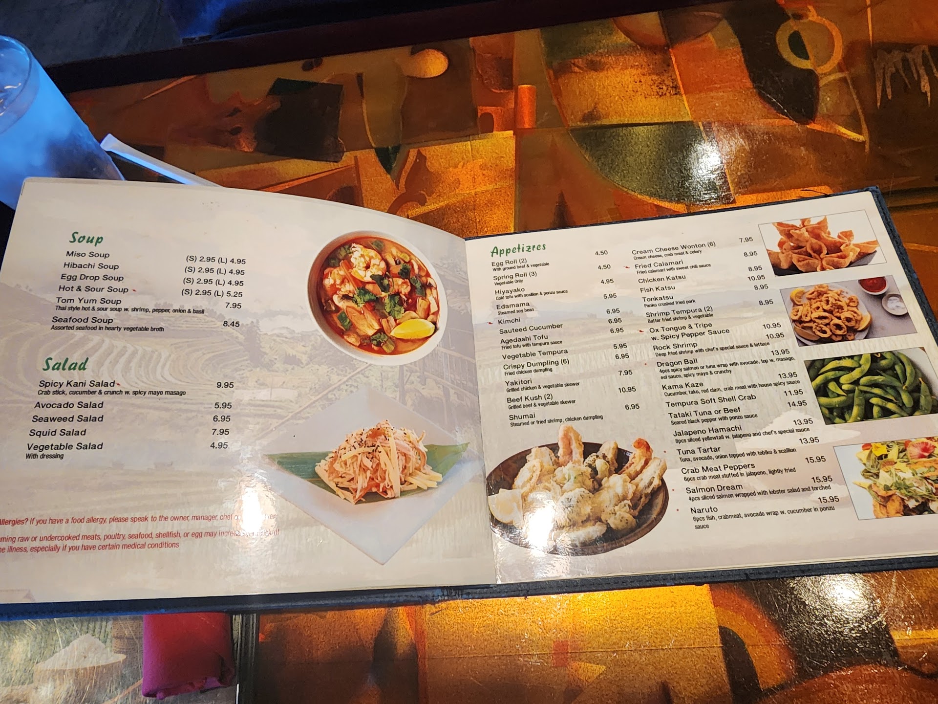 We ordered hibachi to go. Soup was just as good as usual. Salad and dressing the same. The Hibachi(steak) though was completely different. Seemed to be a smaller steak amount and about half the rice you'd normally get. On top of this my girlfriend (i have a bad pallete and cant really taste anything) complained that the rice wasn't very good and that some of the vegetables tasted like the pre-diced and frozen bag of veggies you can get at walmart.