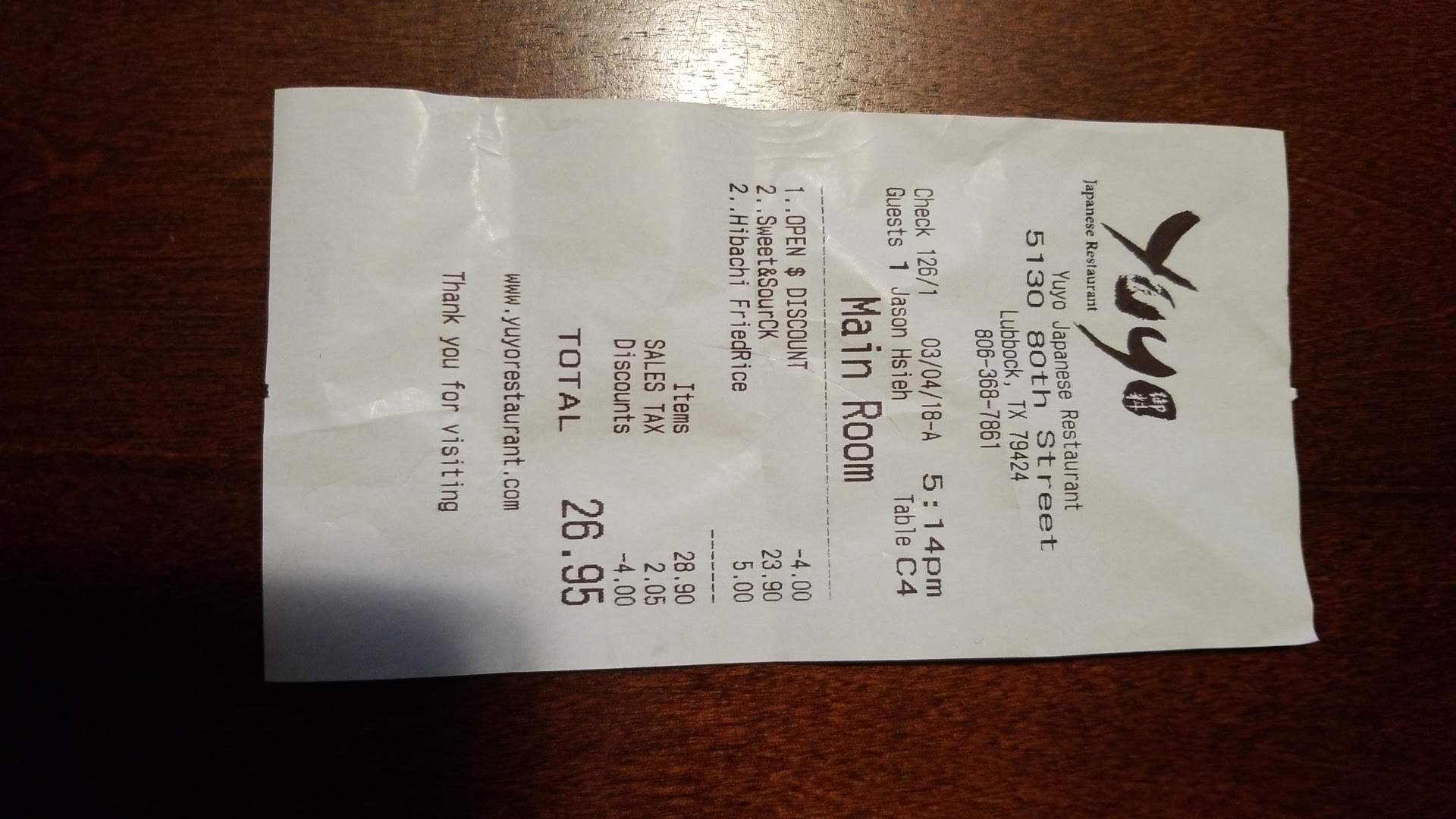 We notified our waiter who stated it was the managers fault and this meal along with a few others had gone up by $2.00. He also stated it had been that way for a while. Why not update your menu then? He then said he would go get his manager but then came back and said the manager was not even there but that he'd adjust the price to what was stated in the menu. So he brought a second receipt which you will see in the image I posted. A charge of $5.00 for fried rice and a charge of $23.90 for 2 sweet and sour chicken meals. $28.90 - $4.00 discount with a tax of $2.05 for a total of $26.95... still not right.
