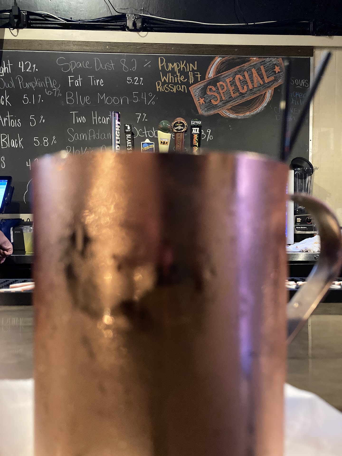 I ended up getting the blueberry Moscow mule, water, and the fajita salad. Which was good. The veggies were really salty though so it was a bit rough to eat them.