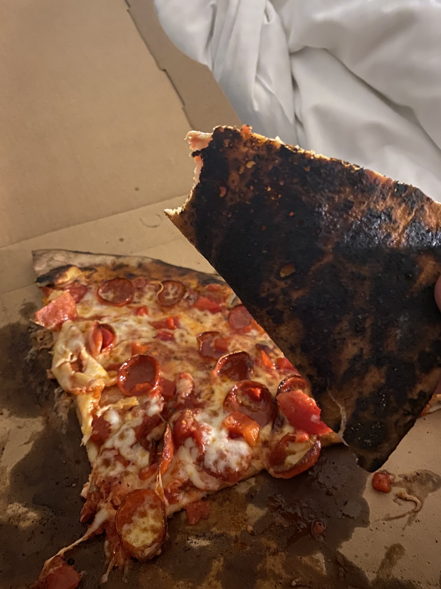 That said even with it being a pepperoni pizza it was not a greasy pizza. Pizza box barely had any bleed through. Not a pizza that is going to make you sluggish and bloated even after polishing off half (or more) of a large pie.