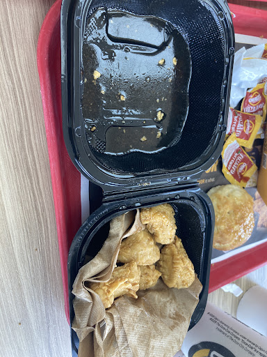 Ā Ā Ā Read moreMe and my boyfriend came in there today to eat. The young lady that took our order was sweet. But she got my order wrong. I wanted spicy chicken strips. But got original. But it wasn't her fault. She was taking our order and she couldn't hear what I was saying. Because the crew that was working in the back was really loud. The sweat tea was awful. Horrible!!! The bicusit was hard. Horrible! The floors was wet where you sit and eat. And one women came out and mopped but did not hat a sign out showing it was wet. She was loud and yelling at her crew. I spent $21. And some change. Was not pleased at all. It...