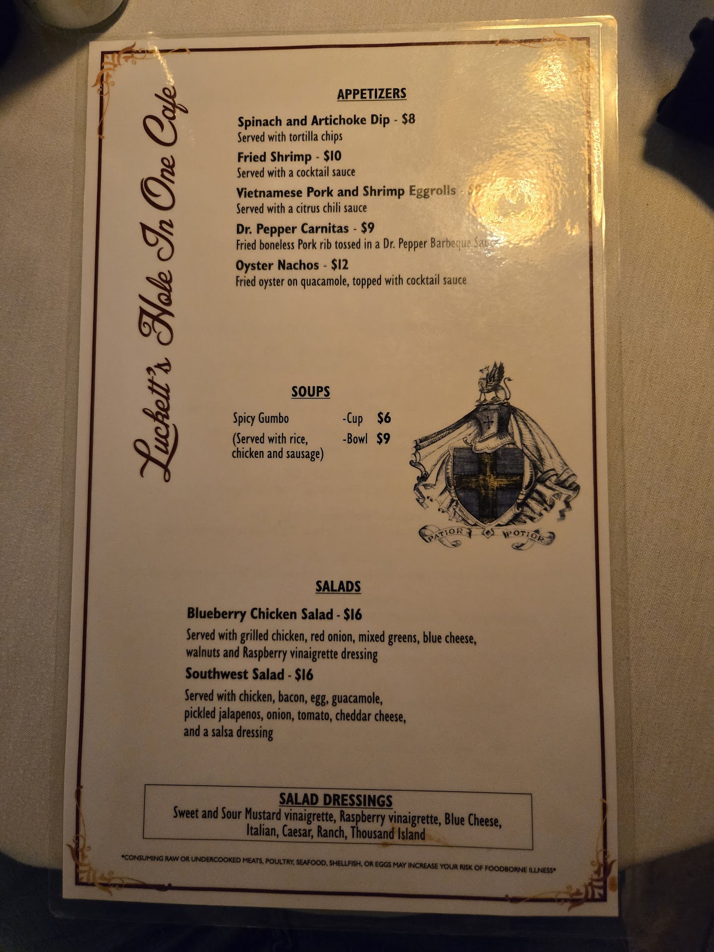 Read moreOur first time here. Our waiter, Wes, was efficient & attentive, but could have been more engaging & friendly. He did warm up some. Good bartender, enjoyed our cocktails, tho a bit too much ice. The appetizer of shrimp & grits cocktail was excellent! The shrimp was firm with a clean taste, the grits cakes were really tasty, the cocktail sauce was tops. Our salads were excellent, fresh greens with a very good house dressing. Hubby enjoyed his unusual entree of chicken fried tuna. My entree of chicken fried steak was disappointing. It was flavorful, but the steak had not been pounded out, it was tough, the breading was far larger than the steak & did not adhere. I would not order it again....do it right or go home! Wes asked me about it, I gave my comments, got zero response. Our sides were great! Loved the whipped potatoes & corn pudding. Desserts were tempting but we declined. All in all, we would...