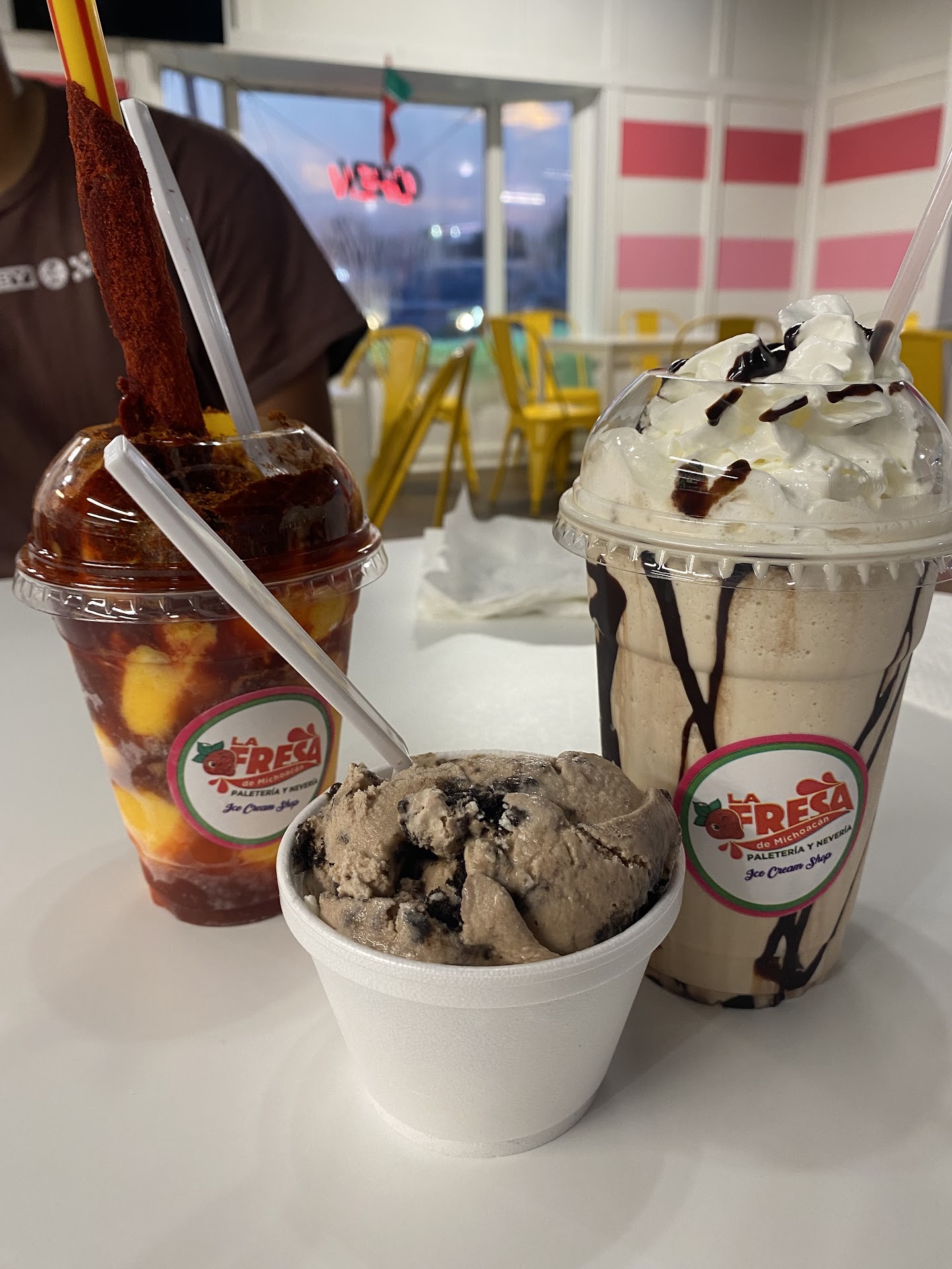 Read moreLots of Great choices of ice cream flavors. Waffle cones and cups. Portions are perfect. A small cup is more than enough for me. They also offer snack options like chips with toppings, flavored waters (agua frescas) fruit with toppings. Clean restaurant. Never too busy. Parking is convenient. Prices are reasonable. Popsicles available. Frozen banana treats available. They will allow...