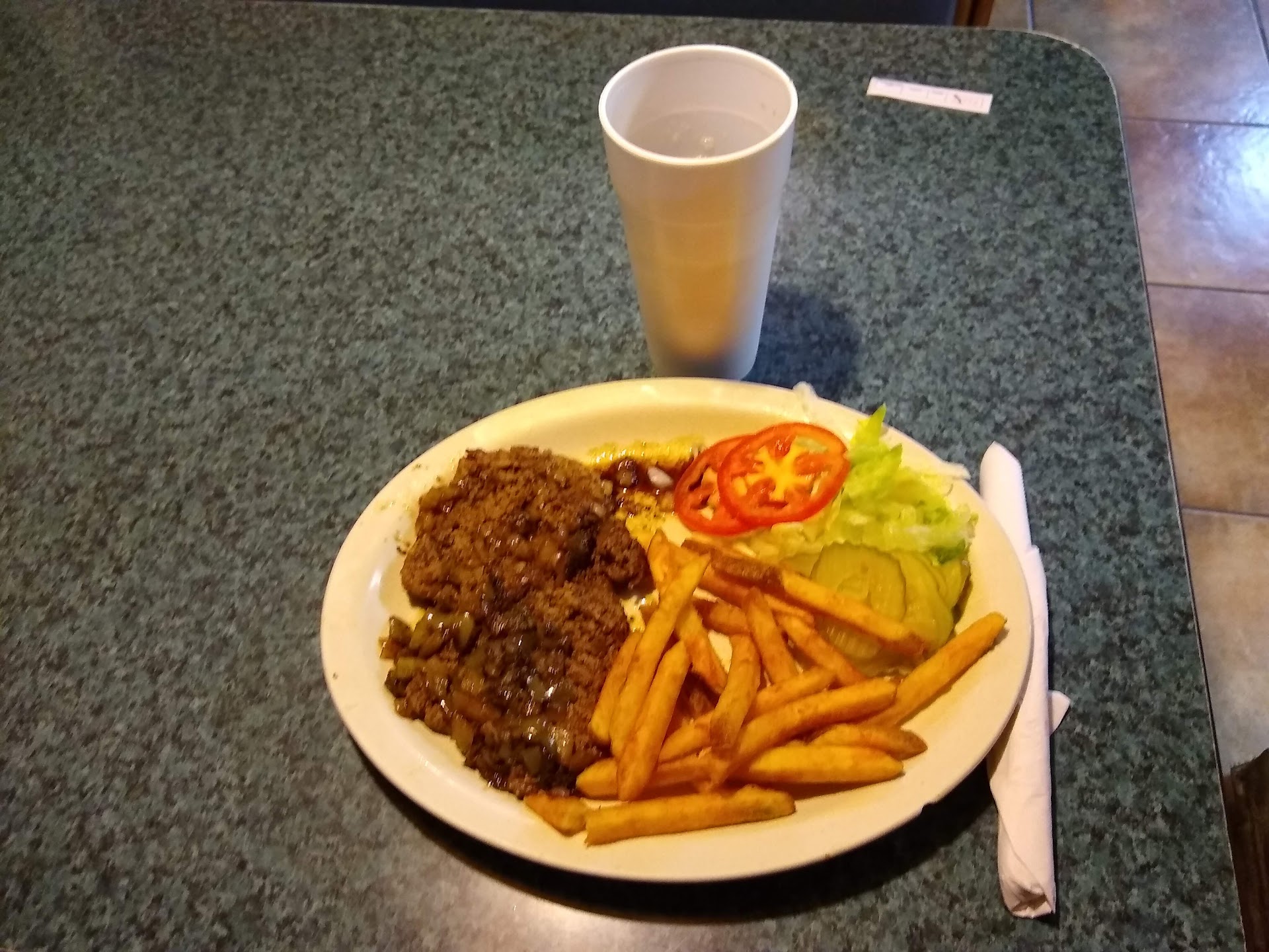 Ordered the chicken fried chicken strips. Comes with 3, but they were huge! Largest strips with ever seen. Comes with gravy, Texas toast, and choice of one side. The gravy was very tasty and seasoned well. Also ordered the avocado slammer. This is a large hamburger with your choice of 1 or 2 beef patties, avocado, cheese, bacon, and a slice of ham. There was lots of avocado which was fresh. It also was very large. The hamburger Patty was very tasty and seasoned well also. Onion rings were batter dipped and fried and were also very good. They offered several low carb menu items. Had a variety of hot dog combinations, taco salad, and other sandwiches. I believe there were several choices for dinner, which was the beef or chicken strips, fried pork chops and I think a chicken fried steak. We would eat there again. Note, Our navigation system took us to their old location which is 3 blocks further down on the...