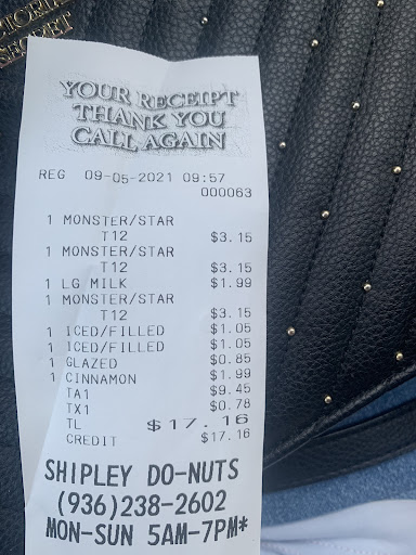 Read moreTERRIBLE donuts. For someone who looks so forward to Shipley's donuts, because living in Louisiana we have no Shipley's Donuts this location had the absolute WORST donuts. We get Shipley's 2 to 3 times a year when traveling to Texas. Typically we stop in Columbia but since Katy Tx now has a Shipleys close to our family in Katy this is the one we visit. We have NEVER had bad service (except this time in Lufkin, the girl at the window was NOT happy about working) or bad donuts from Shipley's Donuts UNTIL the Lufkin store. We got 3 dozen (1 dozen plan, 1 dozen chocolate and 1 dozen holes), the were TOUGH, FREEZING cold and for the first time ever tasted Spoiled. This was horrible. We will NOT be visiting the Lufkin...