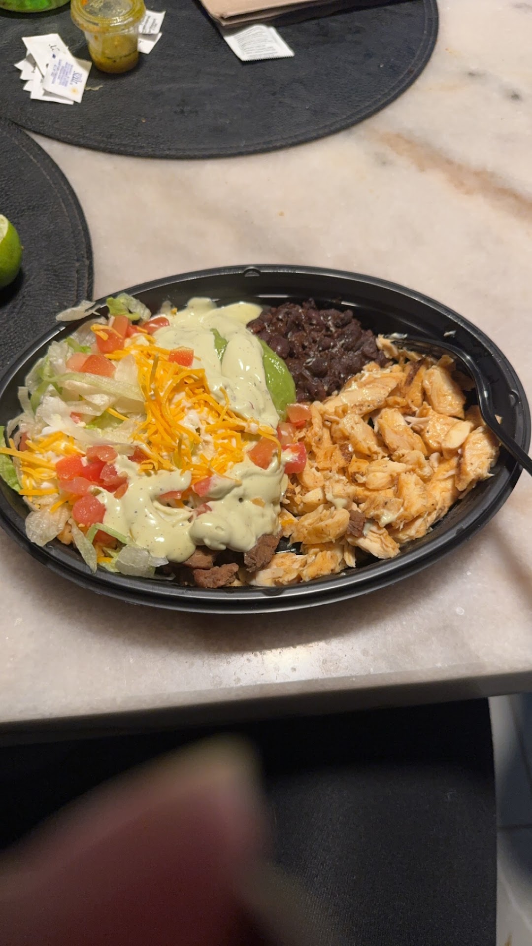 Ā Ā Ā Read moreBro the service here is always amazing but the food I swear I ordered a Chicken power bowl extra chicken add steak and extra avocado ranch . Tell me why now I know they barely give you any meat thatās why I always order extra but tell me why this time they gave me a leaf amount of lettuce a salt packet worth of black beans and still only 1 scoop of chicken ! Now why yall acting like yall donāt know how to portion the lettuce and black beans ? Literally we all know theyāve been sitting on the table for 8 hours so far so might as well at least put them to portioning ! And the lettuce come on if your not gonna put the extra protein of chicken thatās ordered at least put extra lettuce to make it look as if yall did or at least the correct portion of...