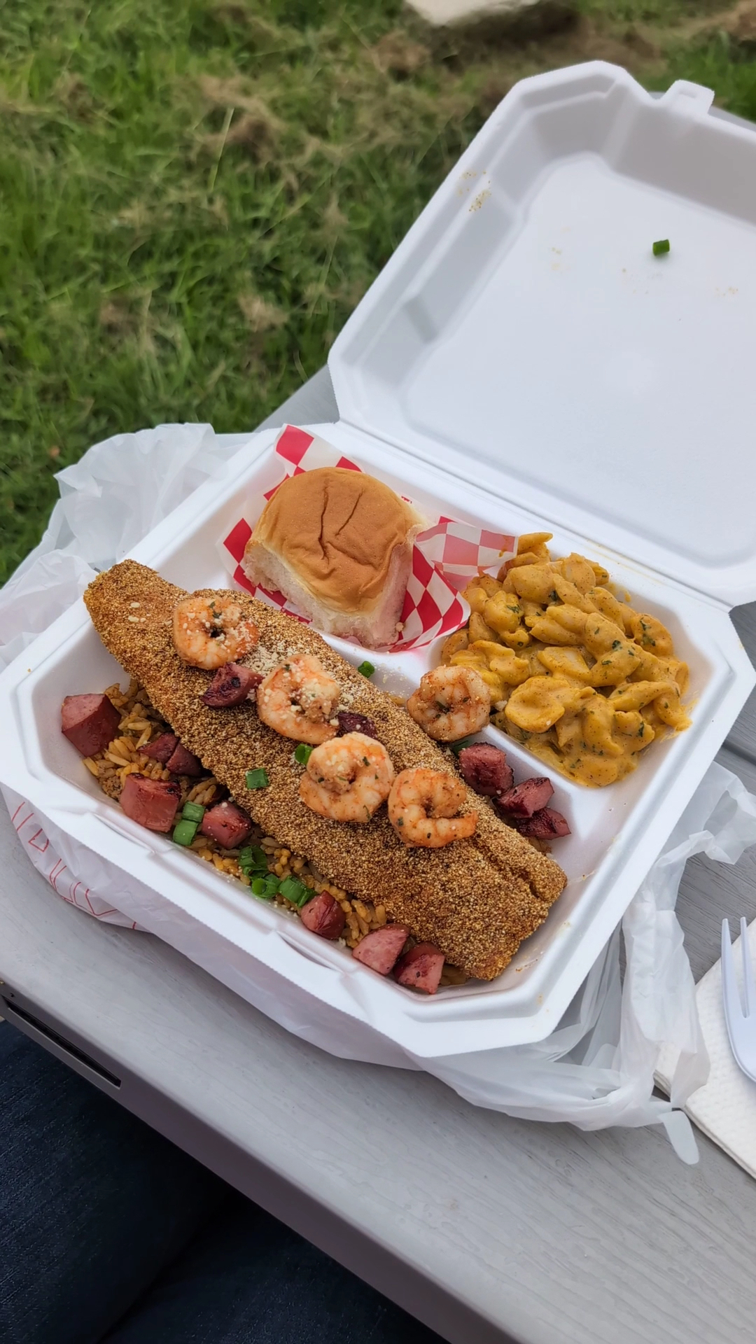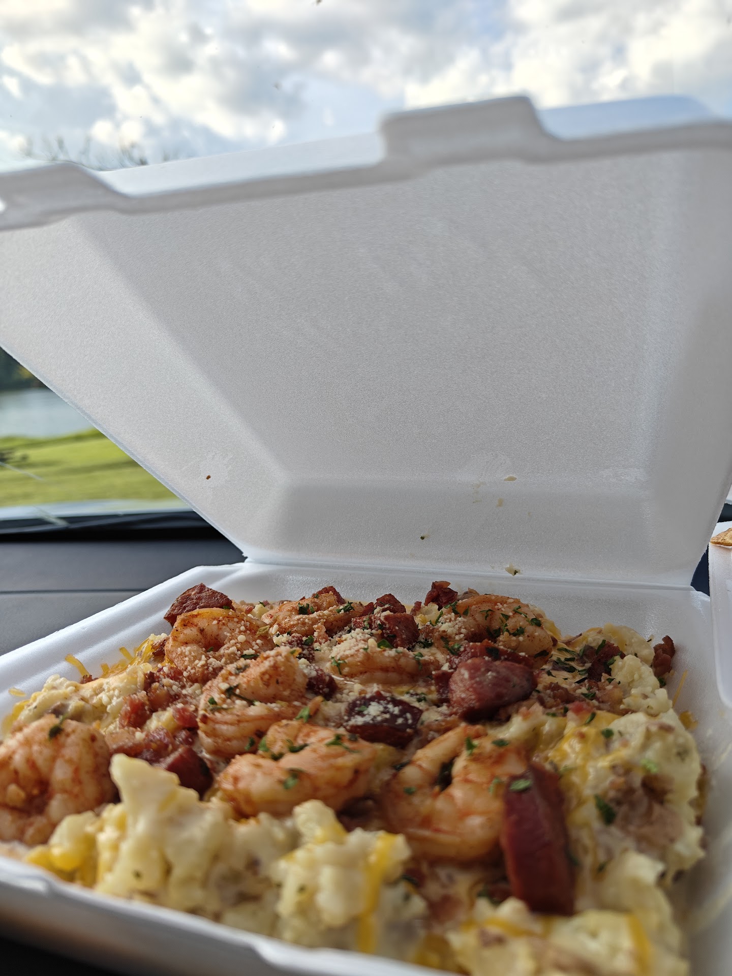 We decided to give this little place a try today. We are "out of towners" but saw they had great reviews. They definitely did not disappoint! My husband and I ordered 2 dishes to share. One was the fried fish It came with SEVEN pieces of fried catfish (there might have actually been more) and 2 sides (we got fries and dirty rice) and a roll. I forgot the name of the other dish, but it was something like Savvy Potatoes with sauteed shrimp and sausage, topped with bacon and Parmesan cheese. Everything was super delicious!! And the tartar sauce was the best we have ever had. It was almost like a mix between tartar sauce and aioli. Just a note we were there on Sunday evening and there was only the walk up window, no seated dining. We took our order to the nearby zoo and ate in the car by the lake. There was only one young man working there so it was a bit of a wait for the order to be ready, but I felt like that also meant everything was being cooked fresh. It was definitely worth the wait and we will definitely go back...