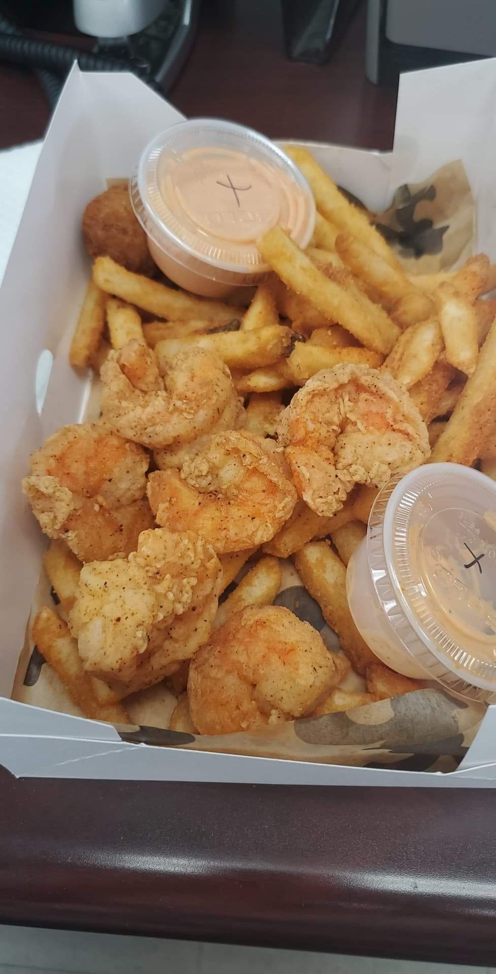As this is the only thing I have ever eaten from this shop, I can't really recommend anything else. Trust me though, if you get the gulf shrimp, you won't be disappointed. They butterflied and deveined them prior to cooking, which makes eating them so much easier. There was also a pink dipping sauce that was very spicy in the best way. The crawfish were good too, but they were playing second fiddle to the shrimp.
