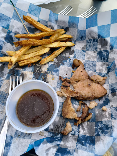 After two and a half hour drive the first restaurant that I had found on Google maps to eat lunch at was closed due to a private event which they did not disclose on their website pulled up Google maps again I found this restaurant across the lake from the first restaurant through 45 minutes around the lake to eat at this establishment this restaurant also located on the Lakeshore . The restaurant had pretty good views of the lake from an upper deck that was a stage below on the ground looks like they have live music that were about 10 picnic tables lined up out from the stage and a covered dining area also off to the side of the pygmy tables facing the stage probably a pretty good place to listen to some live music The interior of the restaurant had some interesting decor mainly Halloween themed there were some pretty good items on the menu and the server I had Olivia listed some specials that sounded good I just couldn't make up my mind one of the specials was crab roll I just has a really good crab salad sandwich at another restaurant weekend before so I chose that one I didn't think to ask if it was imitation crab or not it was imitation crab The server didn't disclose that but it's been quite a while since I've done at a restaurant that served sarimi and called it crab Olivia's service was great She was friendly but not inappropriately familiar Olivia was also very attentive but not overbearing. The french fries that came with the crab roll or perfectly done and very tasty I also had asked for highs 57 instead of catch up and Olivia brought me a bottle of that without question it's just unfortunate that I ended up with imitation crab meat it wasn't horrible but it definitely was not as good as real crab meat. I would recommend this restaurant but I would not recommend ordering...