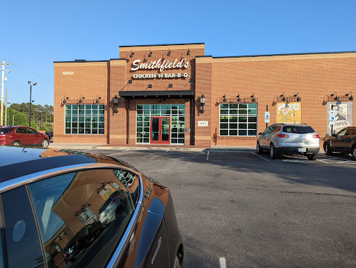 Read moreSmithfield's has a very unique tasting batter (non-spicy). I got the combo platter along with fries. The chicken platter combo comes with: 2 pieces of fried chicken, pulled pork, coleslaw, hush puppies, and potatoe salad.