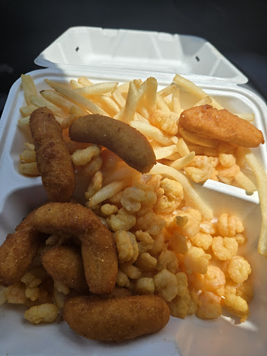 The fries are shoestring fries which were pretty good. The chicken was cooked fresh to serve hot while the batter had a nice salty taste differentiating it from Popeyes or KFC. The pulled pork tasted like it was mixed with a vinegar-based bbq sauce which I didn't find pleasant. The hushpuppies were ok, my wife really liked them. Both the slaw and potato salad were overly-saturated in their respective liquid bases which I didn't like.