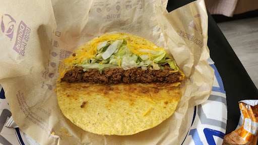 Here are the good things Its mostly clean! Some staff are actually very kind! The bathrooms are usually clean I enjoy the number 2 and there nacho bell grande! [If you want something new from taco bell] you could also try the power bowl, fiesta salad, or there crunchwraps Sometimes [rarely] they will take trash if they are wiping off a table. As in they'll ask you if you want them to throw it...