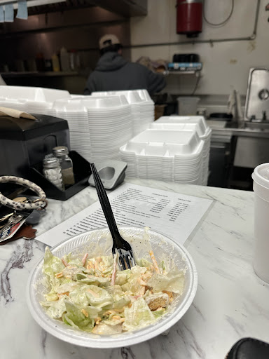 Neighbor told me about this place. Been around town about 2 months before I actually found it. Place is very unassuming. An old cafe, come in and sit down. There are three laminated menu pages not attached. One breakfast and the other 2 are lunch. Ordered the very first item. It was served quickly and was delicious. There are two sizes, small and large. I got the small along with the salad bar. The salad bar is one trip only. Good amount of toppings. All food served on styrofoam plates and plastic silverware so it's not fancy but the food is really good. Sodas served in cans with a cup of ice and you're charged for both.