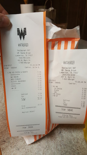 People at Whataburger read the receipt and produce a meal like you advertised it not some crap meal and Charge a Stupid Amount for the crap neal... That is no different than stealing / lying it's wrong. Correct this problem..
