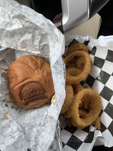 The grilled chicken sandwich was covered with two slices of pepper jack cheese and the most delicious maple bourbon pickles. The buns are branded with a Cooter’s garage logo.