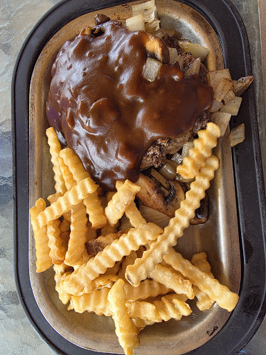 Based on the reviews, we figured this was where we had to stop, and we were right! We found a table right away and our server got our drink order within a minute or two of us sitting down. He was kind enough to put lids on our kids' cups. The salad bar is efficiently sized; it looks small, but everything on it is really good (the coleslaw, especially). We ordered two kid's meals (mini corn dogs and chicken nuggets) and the value for the amount of food was insane. The chicken nugget meal had ten nuggets! The kid's meals come with ice cream, but our server told us that the ice cream had melted so he offered us a slice of peach pie instead (Wow! How nice!). It ended up being probably the best piece of peach pie I've ever eaten. I asked the server what kind of spices are in the pie and he said, "I don't know, a little old lady comes in and makes the pies and she does a heck of a job!" She sure does! Us grown-ups had chicken wings and a BLT salad. The wings were demolished at such a speed that their tastiness is undeniable and the BLT salad was packed with bacon and grilled chicken. Delicious! I have no idea when we'll be in Lusk, Wyoming again, but I do know...