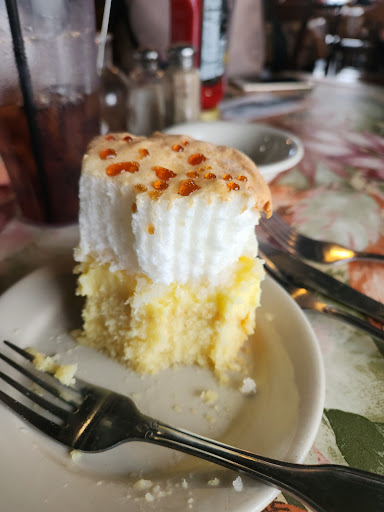 Anyway, my absolute fav meal is the CHICKEN CAESAR SALAD WRAP with ONION RINGS with a friend. You get the whole salad in 2 wraps & their caesar salad dressing is homemade and worth the visit. It makes it perfect to share with a friend, too. Oh! The onion rings are homemade, too. Then to top it off ... another homemade item ... a layered pudding coconut cake topped meringue called BaBa.