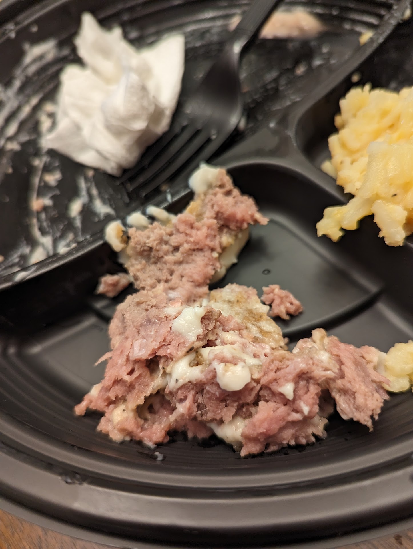 My Mom got the Grandma Sampler. Which comes with 2 Pancakes, Scrambled Eggs, Sausage Patty, Country Ham, a large piece of bacon and hash brown casserole. My Mom asked for no Sausage or Ham and just Bacon. It came to our table with Ham, Sausage and one piece of Bacon lol. Also she asked for cheese on her scrambled eggs and we were charged $1.39 for it on the bill. Something in my opinion should be free or at the most .25 cents. And they are no longer serving pancakes with glass bottles of syrup. She got two massive pancakes and one partially filled dipping cup of syrup which was barely enough to douse one pancake. She asked for another and they obliged her.