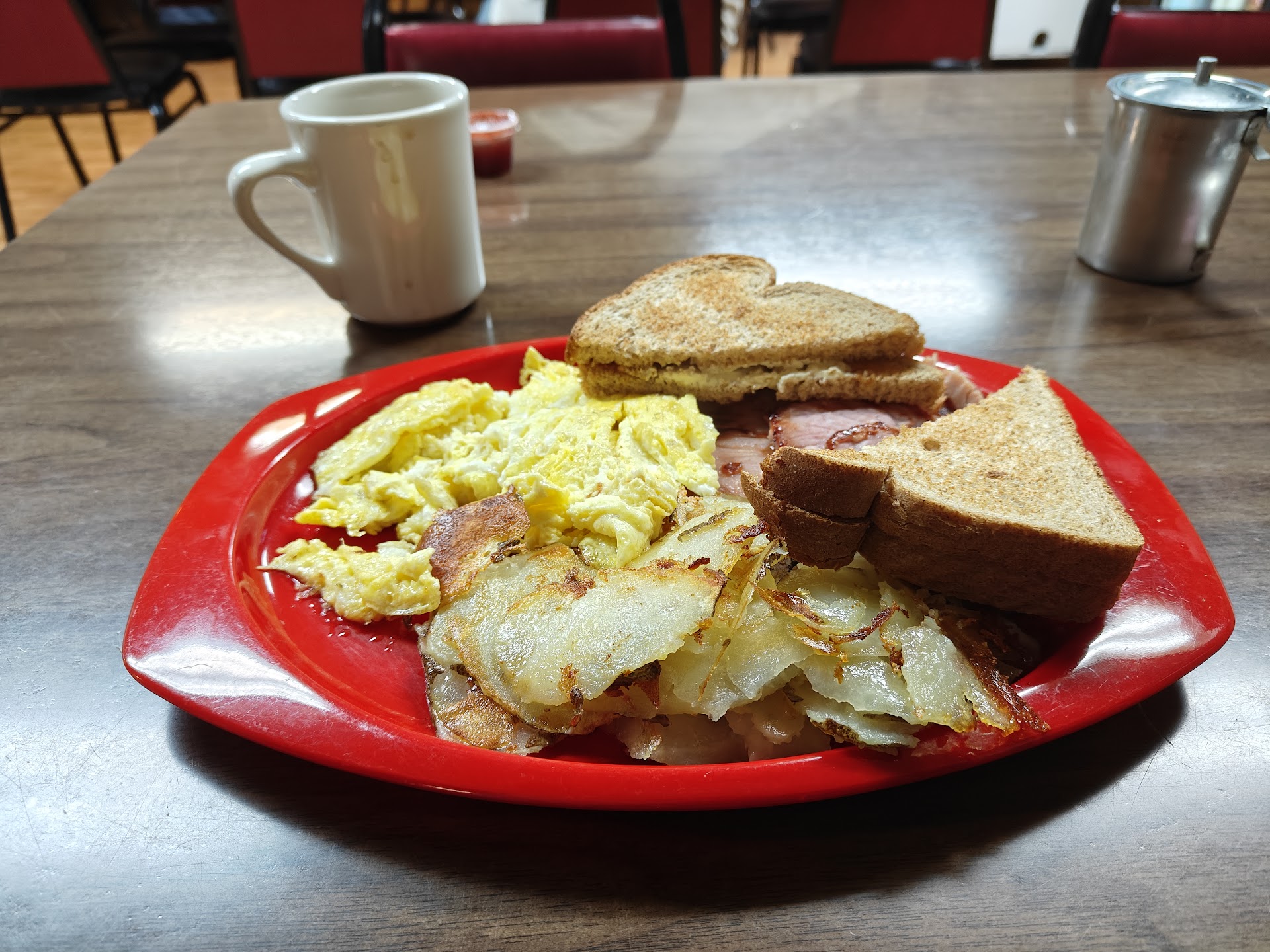 Read moreJust what you'd expect in a small town diner. The excellent waitress took my order quickly and I soon had my breakfast. Was pleased to see my home fries were the real thing .....just like home as you can see in the picture. Scrambled eggs done just right and the ham was tasty and not full of salt. My coffee cup was kept full too. I was well pleased with my visit to Dot's and...