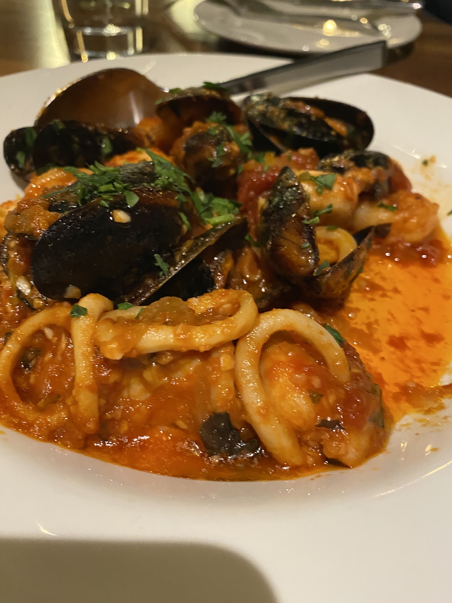 The bad: -The arancini balls were under seasoned, and we had to cut them open and put a pinch of salt in them (maybe some saffron, or at least a proper amount of salt could have helped the flavor -After the starter, they brought out our food and the server asked if I wanted a steak knife.... for my steak, while we had dirty silverware from the starter on the plate, so I said yes, but we also need silverware (as mentioned in other reviews) -We got the scallops w/risotto & truffle butter steak w/risotto.... Neither of us could even taste the scallops because there could not even have been a pinch of salt, seasoning, or whatever this dish was supposed to be seasoned with. My steak tasted like it was seasoned with black pepper and nothing else in the pan, and some butter (tasted no truffle so must have been some truffle oil)