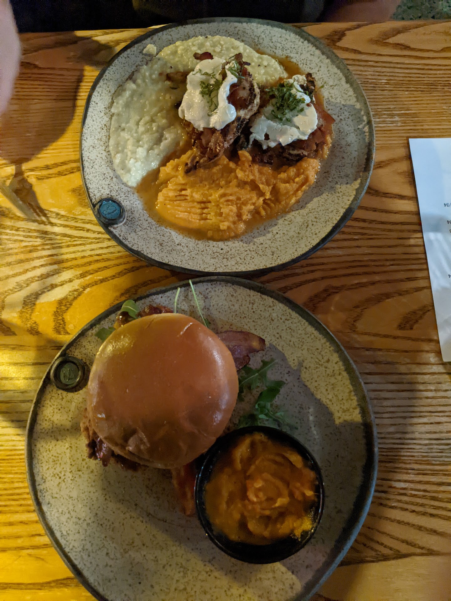 Read moreI was SO disappointed. Everyone's told us how good this place was. It was our first visit and the whole family was there to celebrate the marriage of our daughter and son-in-law. I ordered the fried cauliflower which was out of this world good but no one else in the party liked their food. We wasted over 250 dollars. My daughter wouldn't eat her food. She ordered shrimp and grits and the tiger shrimp were cleaned but the shells were left on their tails and the shrimp were immersed with the other ingredients. In her nice dress she would have had to dig her hands into her food and de-shell her sauce-covered shrimp to eat it. It would have required her to use bad manners to finish preparing her food, not to mention it would have been embarrassing. She is too shy to send a dish back to the chef. Instead she is like the majority of people and will just never try the restaurant again. With what she paid for that dish, it should have been completely prepared and plated for her ready to eat. She tried to go ahead with eating it without the shrimp but she disliked the flavor because the sauce tasted like plain tomato sauce. I tried it and she was right. My husband ordered sauteed chicken with asparagus but he was disappointed because the chicken was white and had not been browned and the seasoning was bland. He was irritated because he said it was fine to eat but for what he got he greatly overpaid for the dish. My son-in law got a stacked sandwich with bacon and chicken. He said it was like pub food and had no seasoning. He was disappointed that he overpaid for the quality as well. He and I ordered the bread pudding which was very good. The good points of the meal did not make up for the negative and we would rather have spent all that money and gone to a place that had has consistently excellent quality. When our goal had been to celebrate and enjoy each other's company, we all left feeling cheated and wishing we had gone...