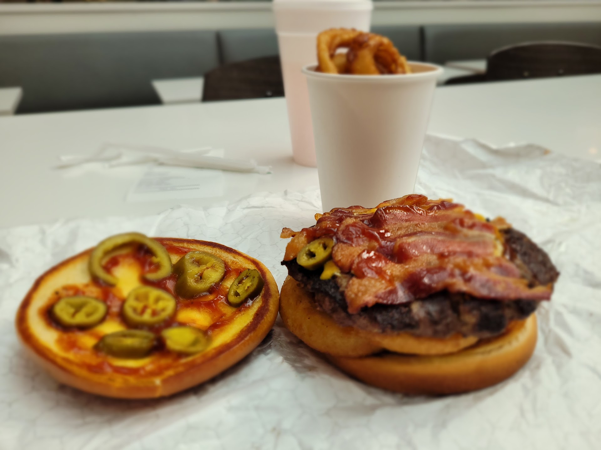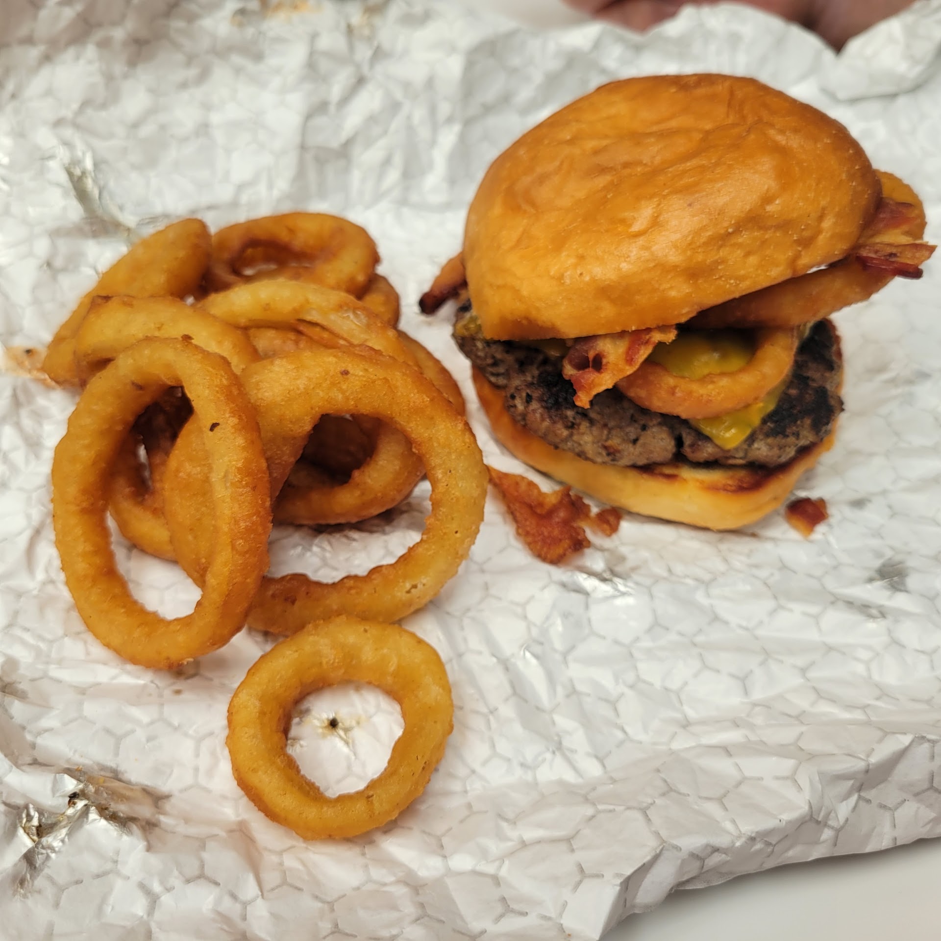 Read moreShopping with the family on a Sunday and only limited to a few open restaurants in food court. My daughter decided to get a plain cheese burger with onion rings. After waiting for 10 minutes to have our order taken by the lady while the two other gentleman were cooking, we placed the order and waited another 15 minutes to get the meal. Upon eating I noticed that my daughter had eaten the burger which was still pink in the middle which was pointed out and discarded. Upon arriving home later that evening my daughter got sick on her stomach and has been nausea all the following day with stomach cramps as well as other issues. I am needless to say highly disappointed with this restaurant and the improper food preparation. Will not be eating...