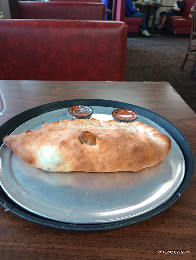 Read moreI ordered a meat lovers calzoned. The crust was perfectly browned and tasted great. As for the rest of it, not so much. As I was eating it I kept getting a bad taste. Some kind of cheese almost like ricotta cheese. I don't like ricotta because of the texture. I also kept getting bites of the meat which the texture of it was mushy like fake meat. I opened up the calzone to look at the meat and what I guess would have been sausage was gross and had very little flavor again the texture was odd. The ham (I am guessing) looked odd and the texture again seemed off. Even the pepperoni didn't seem quite right. I was getting mouthfuls of the cheese which to me seemed too much. It started becoming lumps of cheese in my mouth. I spit quite a bit of the filling onto my plate and just mainly ate the crust. I will never go there again for food after such a bad calzone. The great thing like I said was the crust and the frost mug of water to go with it. I loved the atmosphere and they have a pool table which would be nice to go play maybe enjoy a beer but not to eat unless it...