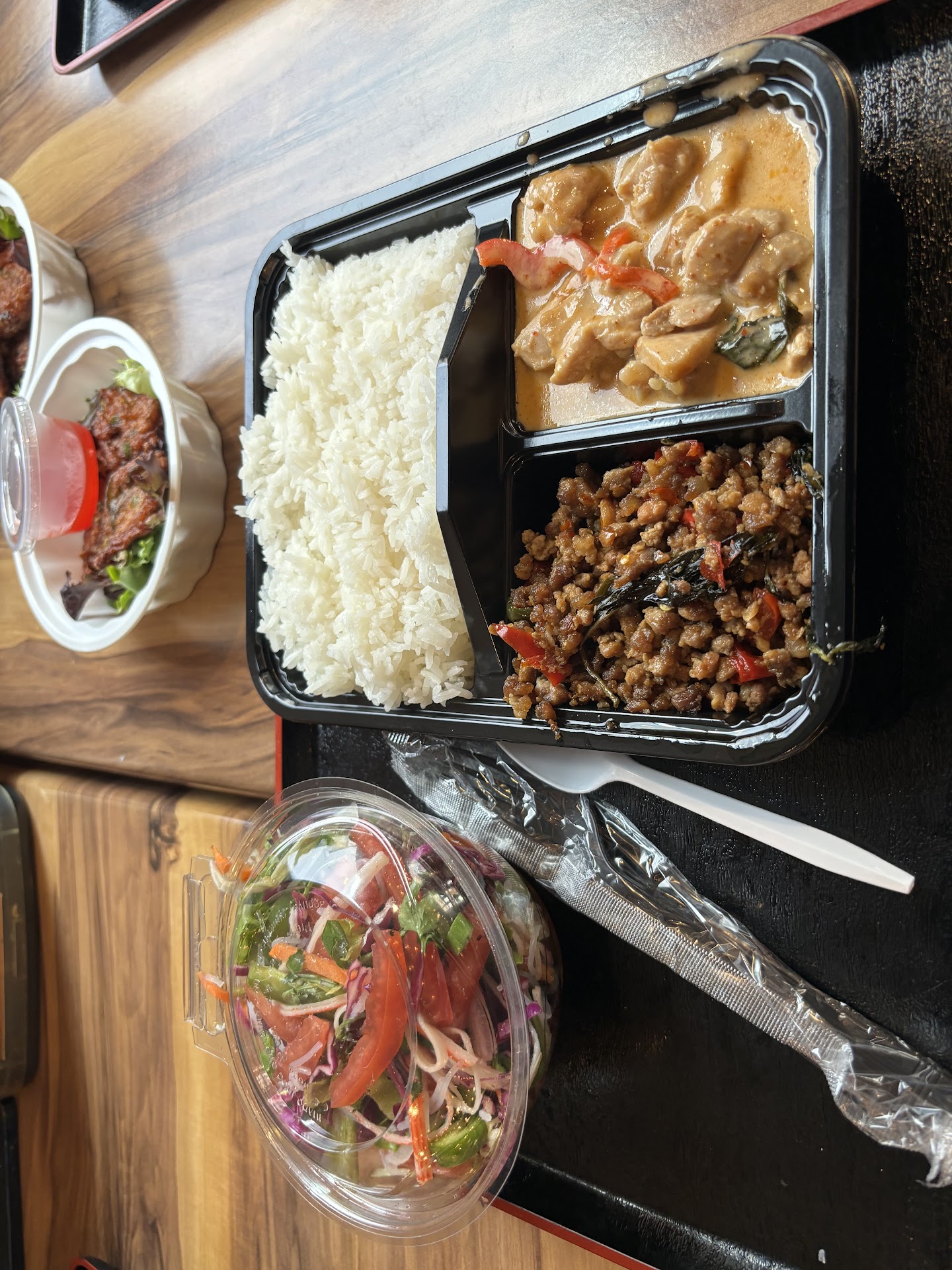 Read moreI ordered through their app and picked it up. I got caramel milk, pork wontons, and the Gai Pad Med Ma Moung with tofu. I didnât realize until I got in the car that my caramel milk didnât have boba in it. It shows boba in the picture on their app, but I guess I have to specify I want boba in the notes? The pork wontons were pretty good and perfectly crispy on the outside, but there was a lack of filling on the inside. And finally, the Gai Pad. The flavor was good, but definitely not spicy. There was no spice level selection, so Iâm assuming I need to add that to the notes as well. It was also disappointing that there wasnât enough sauce and the cashews were missing, which is the main reason I ordered that dish lol. I love how they cut the tofu into triangles though! I feel this place has a lot of potential, so I will be ordering from here again. Itâs also cheaper than the other 2 Thai...