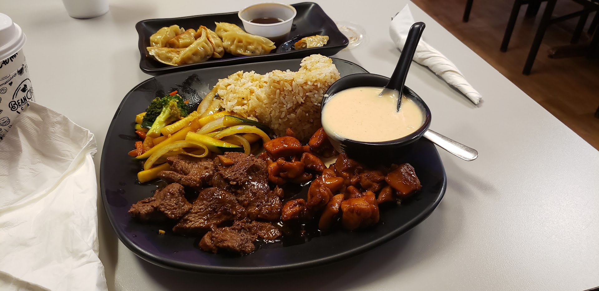Read moreI ordered a steak meal to go (door dash) it arrived promptly and presentation was a 10/10, their to go boxes are one of a kind compared to the other "fast food" style Japanese restaurants, more to offer in their menu as well so that's a plus to a curious mind. It was very well prepared and taste for the vegetables and rice was of high reguards, but those items are normally the same extending other said restaurants so 8/10 given there was carrots for originality. Yum yum sauce was delicious tasting and of a consistency that of the more expensive show restaurants. To go cups of said sauce is relatively overpriced for their size, that being said was only one size for what I used to order with, I'm unsure the options for to go and staying at the restaurant, but I won't demerit any marks simply on the appeal of the sauce in it's own so 10/10 there. My biggest problem was my meat. I ordered steak, nicely prepared, physically appealing, great texture and appealing to the teeth and tongue texture wise, but the taste? It tasted like bacon. The first bite, even with the sauce I could taste a hint of bacon. Thinking it was just my taste buds acting up I tried a piece on its own, drank water to refresh the pallet, then another, and again another. It all tasted like it was cooked with bacon grease. So the taste of the meat greatly disappointed me, incurring low merits there. That being said, my rankings can be followed so far: Rice 8/10 generic taste but appealing Vegetables 10/10 taste and variety Sauce 10/10 taste and consistency Meat 4/10 taste nothing like the meat ordered Presentation 10/10 uniqueness and appealing. Though I may eat there again, it will be second choice being as my favorite meat from a Japanese restaurant is steak. Hence 4 stars. If you've read all this I applaud you as it took even more time and effort to write this and hope you'll take this into consideration when you order from...