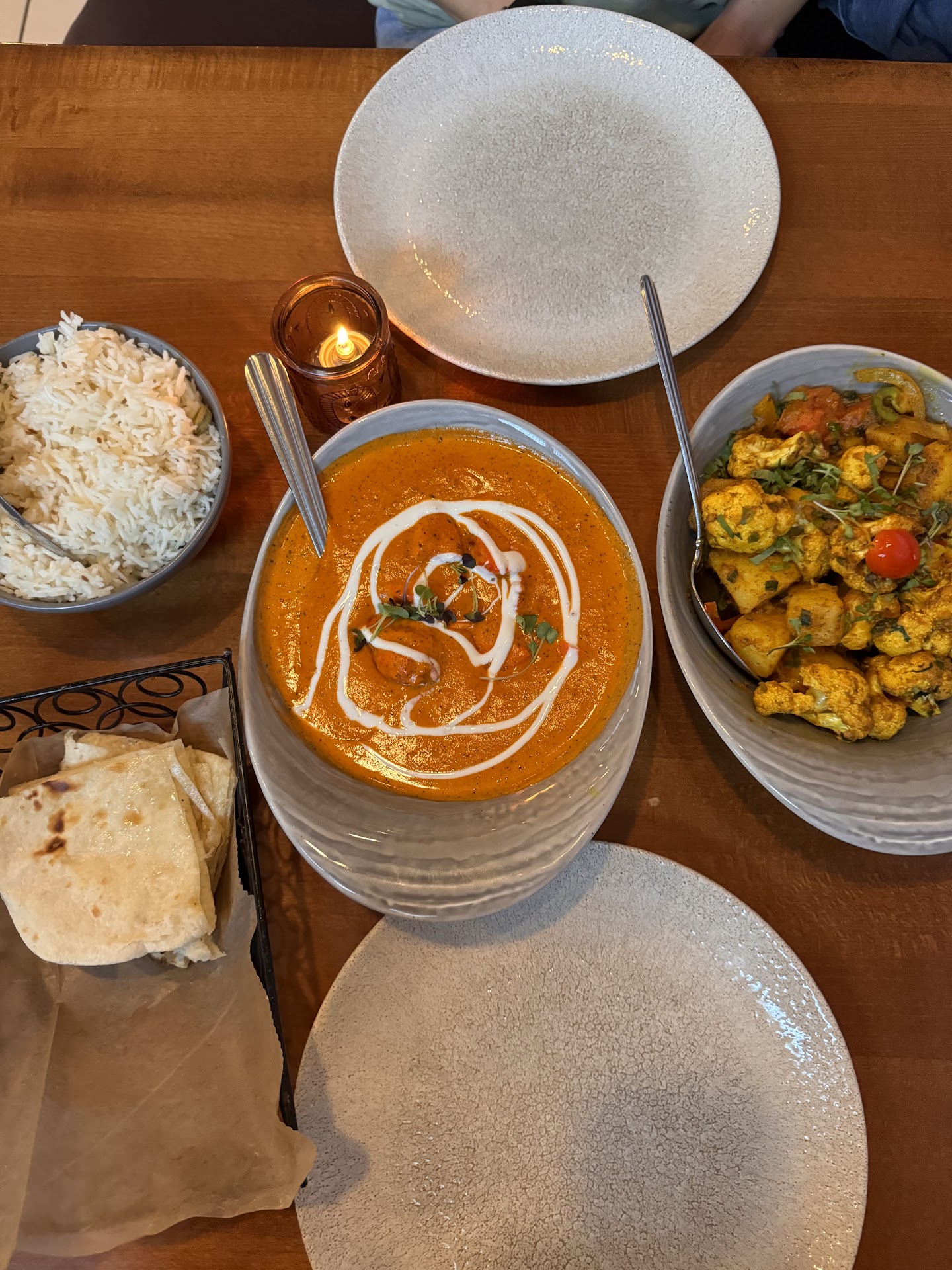 Two of the dishes were served with basmati rice, which was delicious. But they gave us a small rectangle plate with rice on it for two people to share. In the past we have gotten a large amount of rice. Plenty for two people with leftovers to take home with the leftover part of the meal. This was definitely not enough for two people so we asked for the āother riceā. It was obviously missing. 𤣠they brought another rectangle of rice, which was then sufficient for our meals. I feel pretty sure each meal shouldāve come with a rectangle plate full of rice, NOT expecting to share between two meals.
