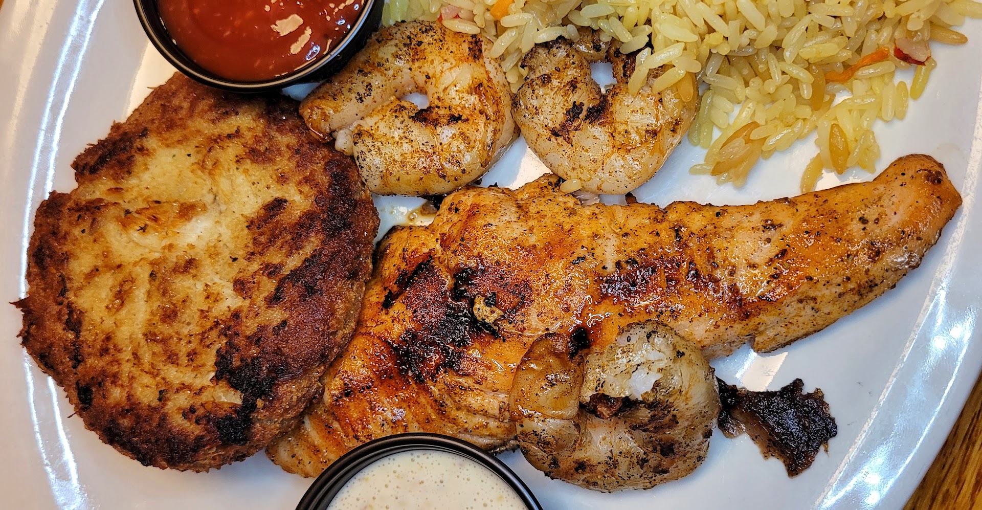 BUT...this time(July 1st), he had been begging me to go again. Service from Melissa was wonderful, the atmosphere was comfortable, but the food is a no go. Even he was disappointed this time sadly. I don't get the prices, compared to the amount of food you get. We got old bay shrimp for appetizer, they looked like they were dumped out of a prepackaged $5 shrimp container from Kroger...for $15 too...not worth it at all. He ordered a burger and fries($15), he liked it, just thought the burger was on the small size and too pink, and didn't care for the fries very much. I ordered the salmon salsa fresco with a sweet potato and apples($24). Now when that got dropped off, I couldn't believe the size, the portion was so small. My sweet potato was bigger than the actual piece of fish. They should have just put my food on an appetizer plate. Salmon was bland and oily, but the sweet potato was at least good. I've had way better salmon from plenty of places. I honestly think my bf makes better tasting salmon.