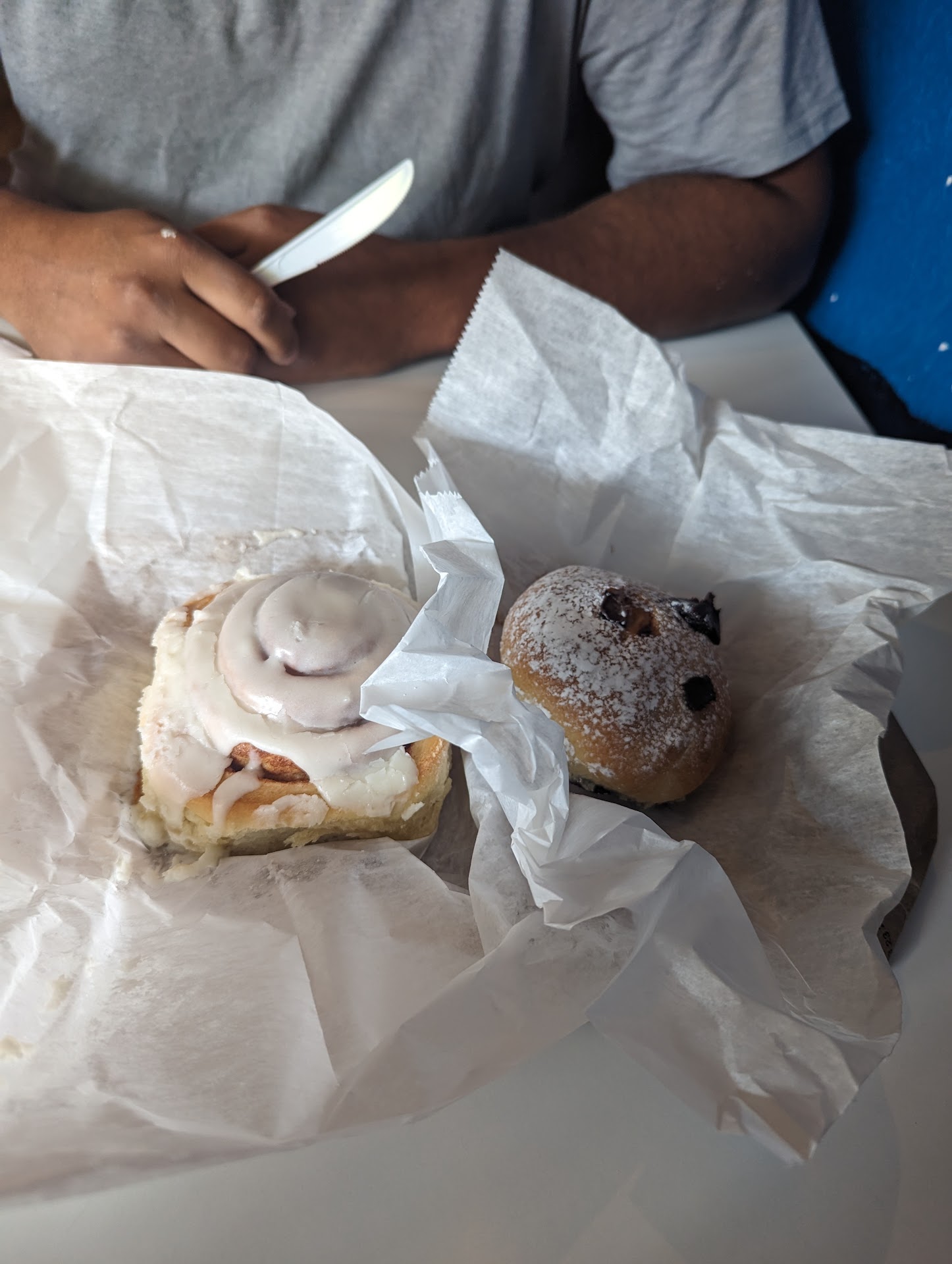 Read moreI am not local, and a relative brought me here for the sausage and egg brioche rolls. I am so glad they did. This bread is moist and delicious, and the filling is quite tasty. Some might say there is a paucity of filling, but there is exactly the right amount. There is a good amount of the delicious bread to spread honey or jam on. I loved them! They also had a cinnamon roll as big as your head. The bread was slightly coarse and dense, spiced just enough with cinnamon and a perfect amount of glaze. Don't pass this up when you visit. They have coffee, and lots of other goodies that I didn't even get a chance to look at. They have a sister store, too, so it's convenient to get these delicious treats. Why are you still reading?...
