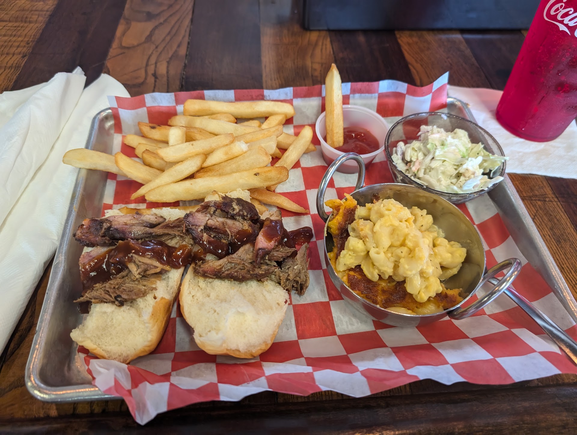 Since we were new to this establishment, I asked our server if the hush puppies were good, she didnāt know. My wife asked what kind of bbq sauce came with the pork, she didnāt know. We chalked this up to being a new employee with not so great training. RED FLAG #3