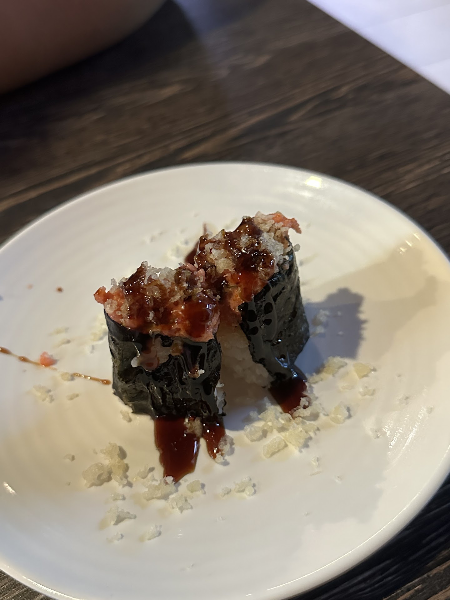You know it’s too good to be true when the overall rating is a 5.0 My friend and I got here around 6:30 on a Sunday and we were the only 2 in the restaurant. We got menus and no one came to take our order. While we waited, we got up and grabbed beverages for ourselves from the fridge that was in the dining area. We didn’t get glasses of water, napkins, plates or utensils. Finally our server comes over. She was not at all personable. She didn’t say a word- just looked at us and waited for us to tell her what we wanted. She didn’t seem to know the menu well because she needed me to point at the items I ordered. Nigiri sushi and a small house salad- seemed to be foreign to her. We got 2 pieces of a roll ‘on the house’ and she served us the plate alone- mind you, we still haven’t gotten plates or chopsticks. Just as she was walking away, I politely asked for chopsticks and napkins. We made eye contact and she nodded so I know she heard me. She walked over to the sushi bar and I could physically see her on her headphones talking on her cellphone behind the counter. We waited about a min and I said aloud- ‘excuse me, can we please get utensils’? She looked at me and said ‘oh yeah, sure.’ And proceeded to take her time finishing her call before she came over. I am normally a patient person, but I’m sure as you read this, you can see my patience was slowly running out, especially because we were the ONLY table in the restaurant. She finally came over with chopsticks, 1 single plate, and 1 soy sauce dish- mind you, there are 2 of us that ordered sushi. She walks into the kitchen and I look at my friend…she didn’t bring soy sauce. I got up and asked a gentleman behind the counter and he immediately grabbed it from the fridge that we got our drinks from earlier. The food was good, fish seemed fresh, but the service was absolutely terrible. We will not be returning. This place may have decent food but it will not survive without good...