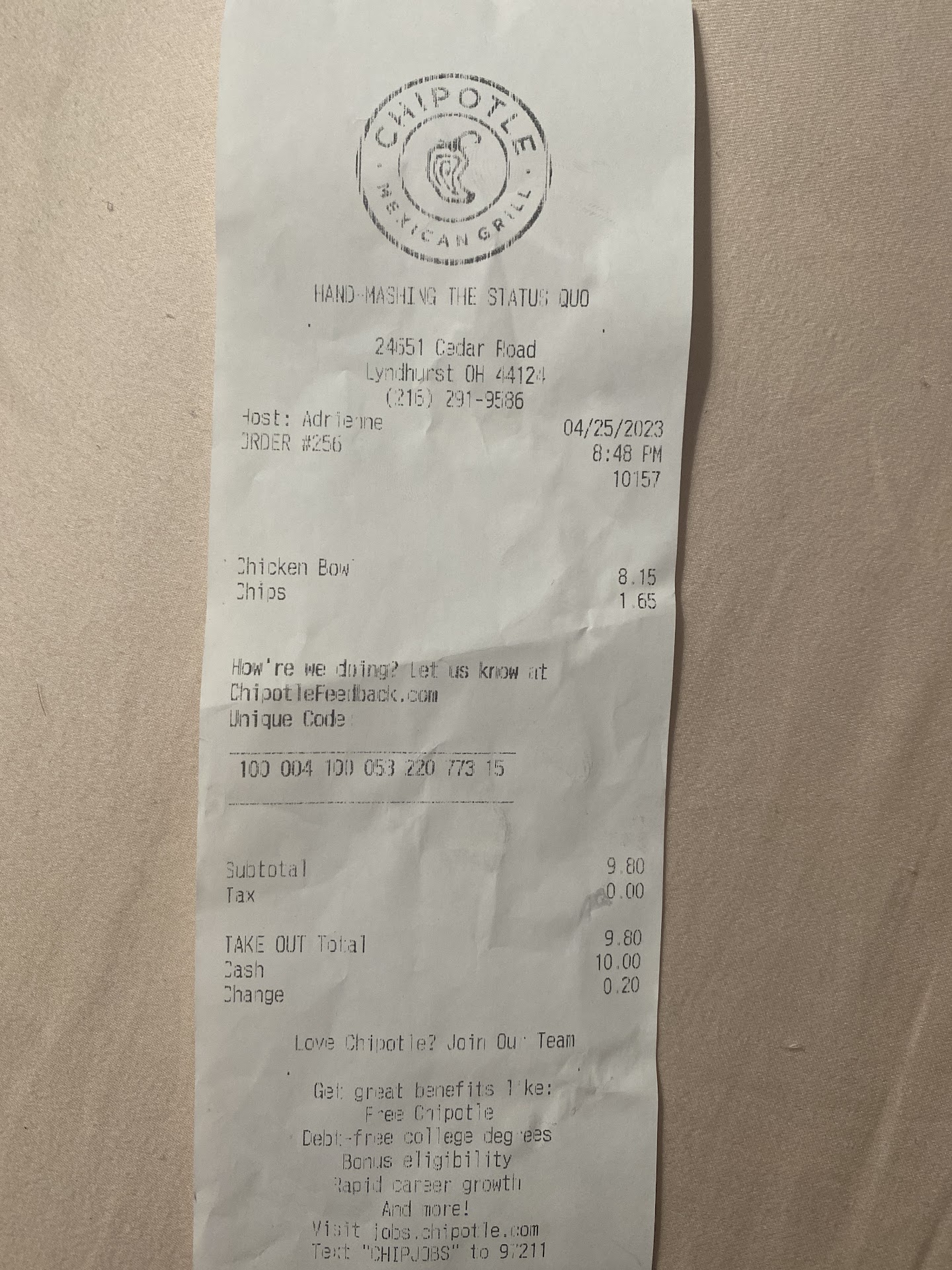 In the end, it wasnât the worst thing ever, but it was definitely one of the more disappointing Chipotle visits Iâve had. Given the location, I expected a bit more in terms of cleanliness and customer service. I wonât be returning to this location, and I hope they can improve for future customers. Thanks...