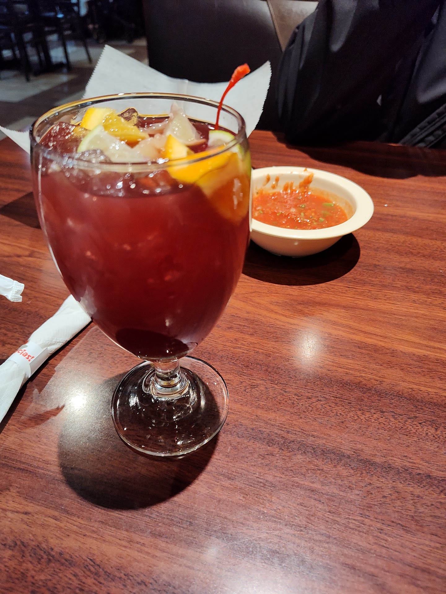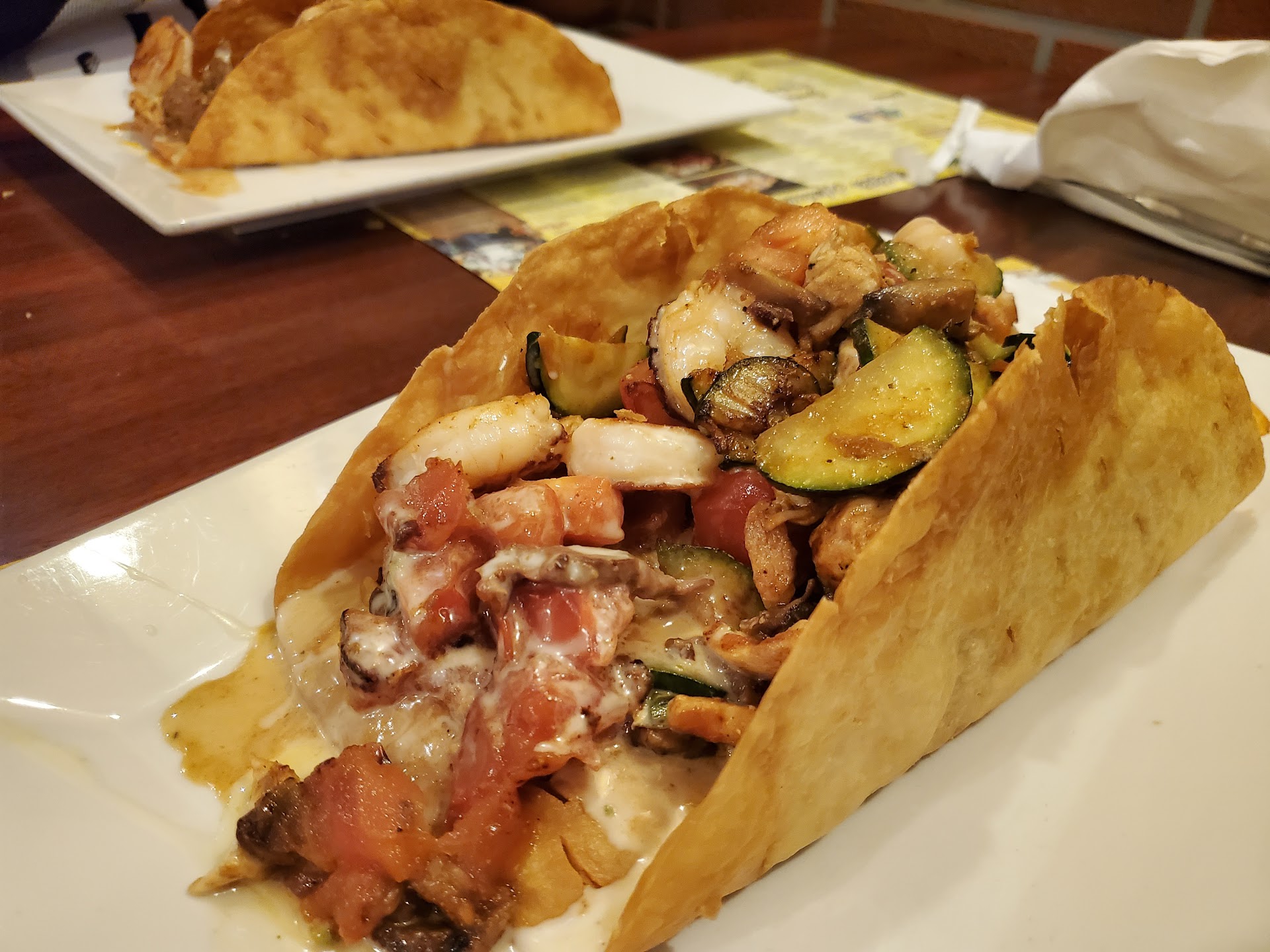 Update: despite previous praise, on our last visit, while the service was good, the food was overseasoned. Salsa was a lot spicier than normal, as were the shrimp enchiladas, and even a simple dish of chicken & vegetables had over-salted chicken. The space's ambient noise & smooth surfaces made it even less pleasant. We still received good service & everything was timely & prompt. But we won't be going back, as even after the shrimp enchiladas got sent back, the supposedly milder cheese sauce was still too spicy. Bear in mind that the enchiladas normally come with salsa verde, which is a mild sauce. So it was all abnormally spicy. Hence, I can no longer endorse this restaurant as being that good for a pleasant meal. Apparently, new management has made a difference. On my first visit to this relatively new location, I was unimpressed, as they put us by the bar, which meant talking over the blender that was making drinks. It was so annoying. And given, if like me you have sound/noise issues, I can recommend the booths along the walls away from the bar. You will be a lot happier. If you like noise, you can sit in the middle area. All that being said, my second visit was a lot more impressive. We were sat in the middle and near the bar, but we were able to basically enjoy ourselves and hear eachother well. (We were seated by I would guess someone who is a child of the owner or manager, given her apparent age, so I'm willing to forgive it.) Our server had a lot of people to tend to, if you can imagine a Mexican restaurant being busy on a Saturday night. So if you go on a busy night, expect service to be a bit sparse. Try to figure out what you want quickly, as difficult as that is with such a wonderful menu. There is a lot to choose from: appetizers, salads, entrees featuring various ingredients, combination platters. I ordered the #13 combo, which was an enchilada and a burrito with your choice of meat, and a chile relleno. A chile relleno is basically a giant jalepeno popper, only made with a big green chile. (I want to say it's a poblano, mild but with a little heat to it; watch out for seeds.) My companion enjoyed a new burrito featuring shrimp & pineapple and covered in melted cheese sauce. In her own words, it was perfect. They had some coupons in the mail that we used, and we were able to save a little that way, so watch your mailbox or see if they sent you something. As for the meal, I enjoyed mine, and they provided tall glasses of cold drinks, which goes perfectly on a cold night with warm tortilla chips and fresh salsa before your meal. If you are a sports fan, the bar features large-screen TVs to watch the big games on. That night, they were showing one of the NCAA games and one of the world league soccer games, so that made for interesting viewing. The place is clean and the staff are attentive and want you to have a good experience. The manager came by to check on us, and was very friendly and personable. It made us feel really special for him to take the time, especially since we tried a new and innovative dish that we had never seen elsewhere. I would recommend this place for families or friends looking for a festive and flavorful night out. Menu items are great for splitting or for enjoying by yourself. Parking is ample and easy to access, as the location (the Greens shopping plaza)...