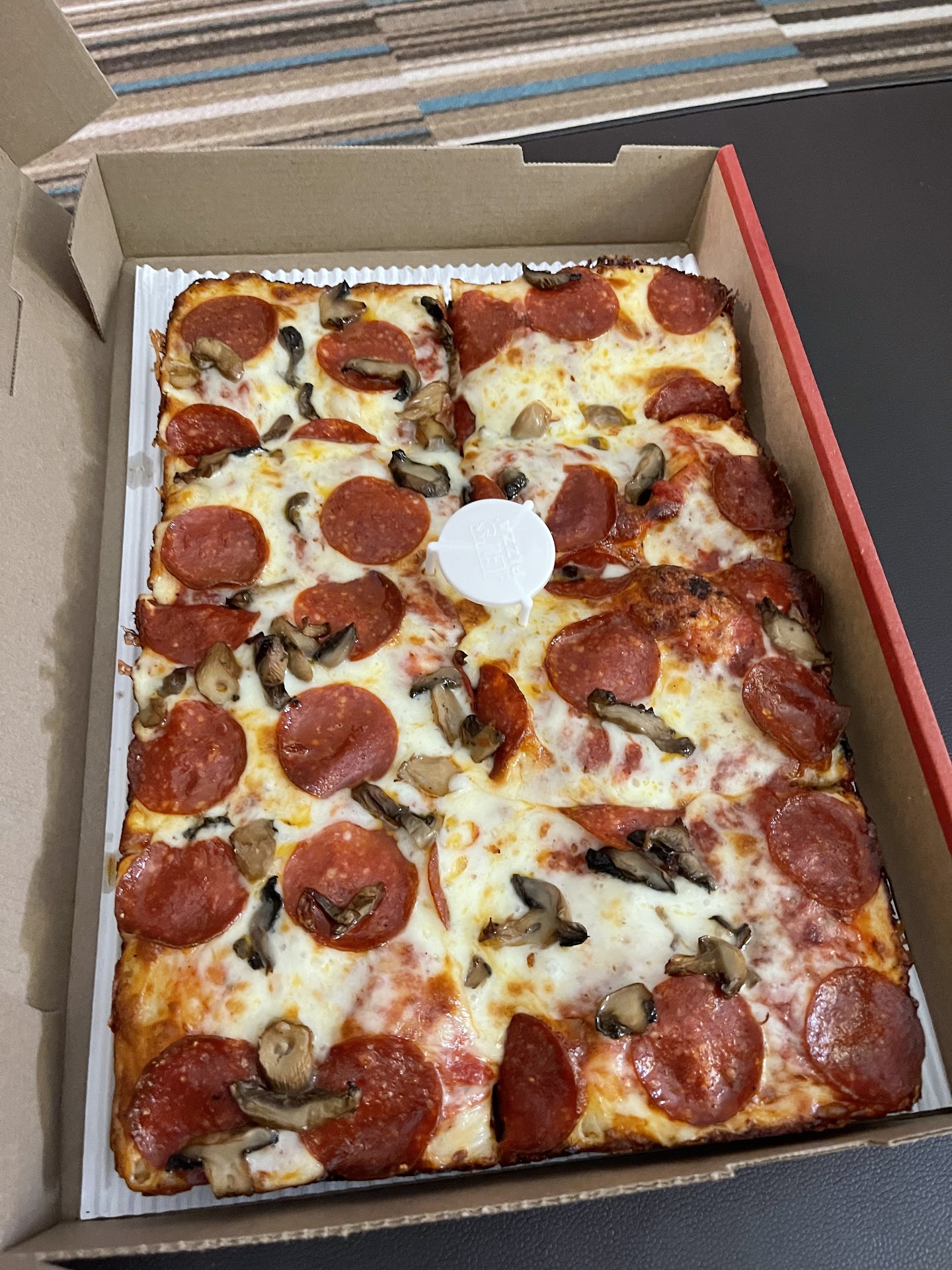 Be sure to pick up your pizza, don't have it delivered! I am a huge fan of Jet's, coming from the Detroit area where it started. That is why when I was planning lunch for a work meeting, I chose to go with them. I have picked up pizza from this location before, and it has always been great.