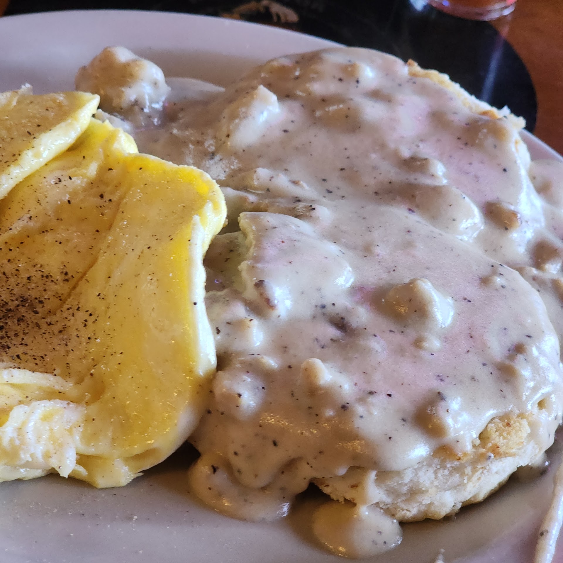 Read moreThis was super convenient for us prior to jumping on the freeway home. They were open early and served breakfast. Not to mention just any breakfast, Im a huge biscuits gravy girl. Absolutely nailed it! I did a half order with two eggs scrambled. Little bite to the gravy, which I absolutely try for when I makenit home! He has the countey fried steak. Huge portions! Bartender was very friendly and kept my coffee full. He had a screwdriver and said the OJ tasted like it was freshly squeezed. Highly recommend and plan to stop by when wwre visiting in the future. Looks like a great lil dive bar $2 high life...