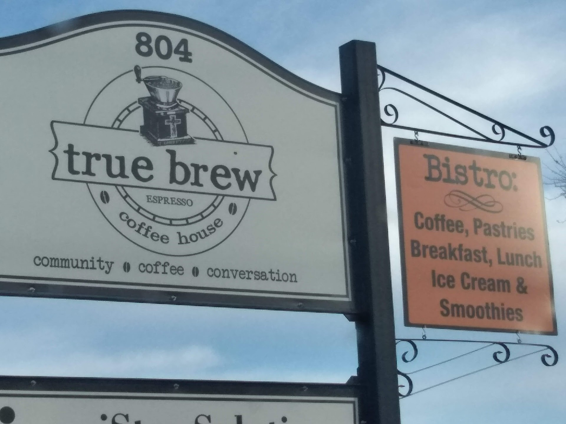 We stopped by this cozy little coffee house unexpectedly on a mini vacation when we decided we wanted to get some fun beverages. What a wonderful spontaneous decision it was!! Service was fantastic, with the staff all being very friendly and attentive, and they got our drinks done quickly. They were even very apologetic and quick to get my order right when they accidentally made the wrong thing, despite the fact that I told them I would be more than happy to take what they had made instead. My husband got an iced Americano that he said was just the right mix of bold flavors, and I got an orange sherbet milkshake which was oh so sweet and creamy and took me back to my childhood summers. The inside is very comfortable and inviting, with several cozy places to sit, and we particularly enjoyed the patio where we could be outside but still be a good temperature due to the shaded pergola overhead. Overall, we had a wonderful experience with True Brew and will definitely come back when we're in...