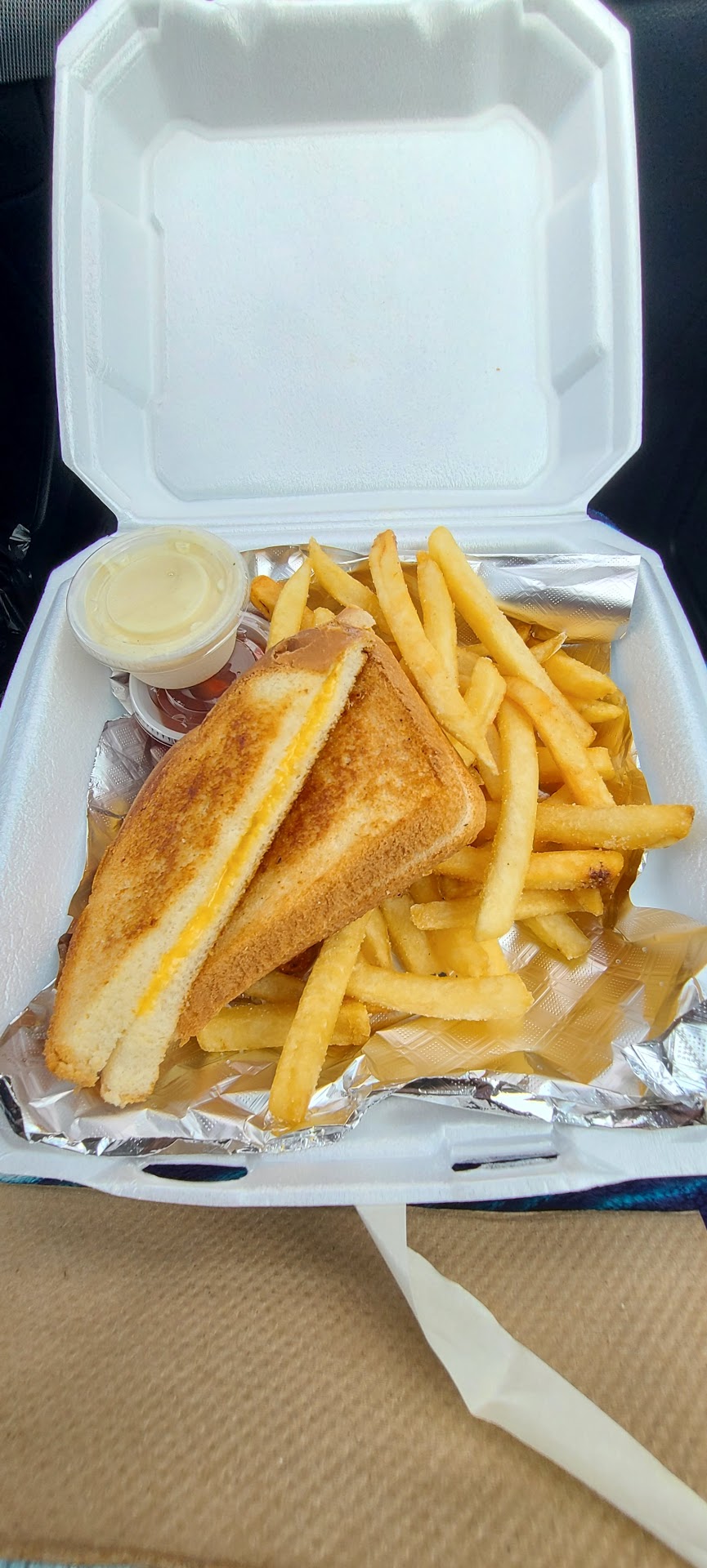 We walked in just before close. The inside has a casual ocean vibe. We were passing through town and wanted to try someplace local. We ordered 3 grilled cheese sandwiches and 2 fries. I love that this places also offers a veggie sandwich and veggie burger, so vegetarians have some options. 🙌 The man at the register was nice. All of our food was good. I liked that white sauce a lot. I think it would be good on a sandwich(not grilled cheese, but a regular sandwich). The fries were hot and fresh. My only complaint was SOME of the fries had too much salt on them, but all in all it was a good experience. If I lived around here, this would be a regular...