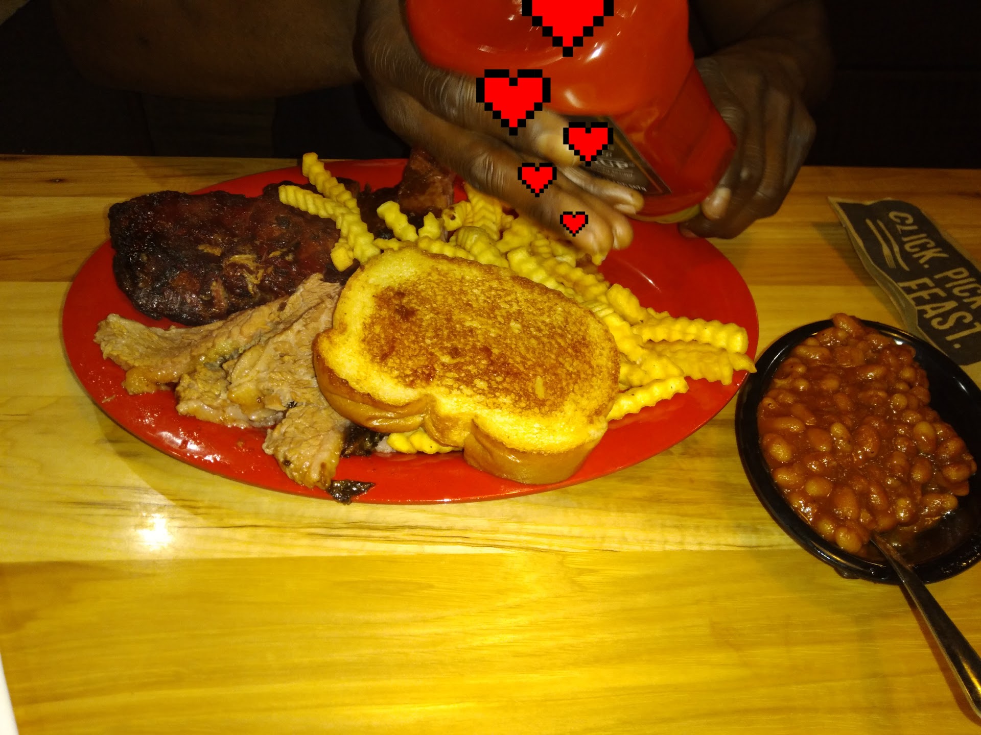 Cons- Our waitress was not very good overall. She took a long time to get to us, forgot straws, forgot my mustard and my mother in law's butter for her corn on the cob, forgot my chicken wings, didn't offer beverage refills, forgot my wife's salad plate for the salad buffet and took forever to get another salad plate when she asked for one. Didn't ask what kind of bread we wanted with our food and we automatically got texas toast (I wanted cornbread). My pulled pork and ribs were not warm. I'm not sure how long it had been sitting out, but it didn't seem to be on a warmer (maybe they pre-plate some popular menu items?) Everything took really long, except from the time I had my credit card out to the time I got it back. It is frustrating to have to wait to place your order after we have been done eating our appetizer, only to wait some more...