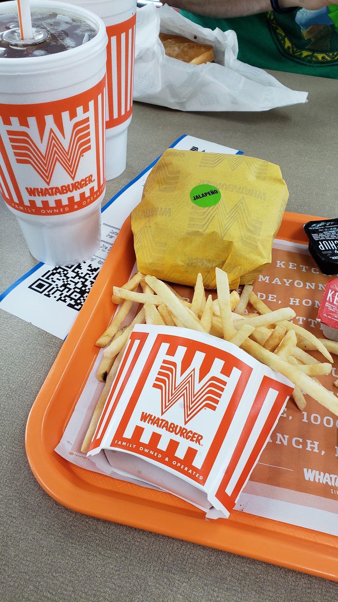 Read moreStopped here at lunch time Saturday. There was a line at the drive-thru and the lot had a good amount of cars. With that said, placed our order within two minutes of getting in-line. We ordered a Whataburger with cheese, #1, and the Jalapeño and cheese burger, #4. Hannah, the person who was on the intercom was friendly, clear, and concise as she repeated our order and asked us if we wanted all the items that were on our respective burgers. We asked for a plain hamburger for our dogs…nothing…and she even asked about no seasoning and what size patty. I let her Hannah know it was for our dogs to enjoy, which she acknowledged. Hannah also asked if we wanted the Spicy Ketchup. We waited about 6 minutes between placing our order to arriving at the window. We were greeted by a friendly lady who got us in and out. She waved to our dogs too…lol Our order was spot on. Burgers weren’t super hot but they weren’t warm either…just right. Fresh crisp vegetables, just the right amount of mustard, and the cheese was still warm and gooey. All on fresh buns. The fries and onion rings were still hot, seasoned just right, and paired nicely with the spicy ketchup. The unsweet iced tea was just what was needed to wash down the delicious meal and cool us off on a warm summer’s day. This was our first time at this location and what a great...