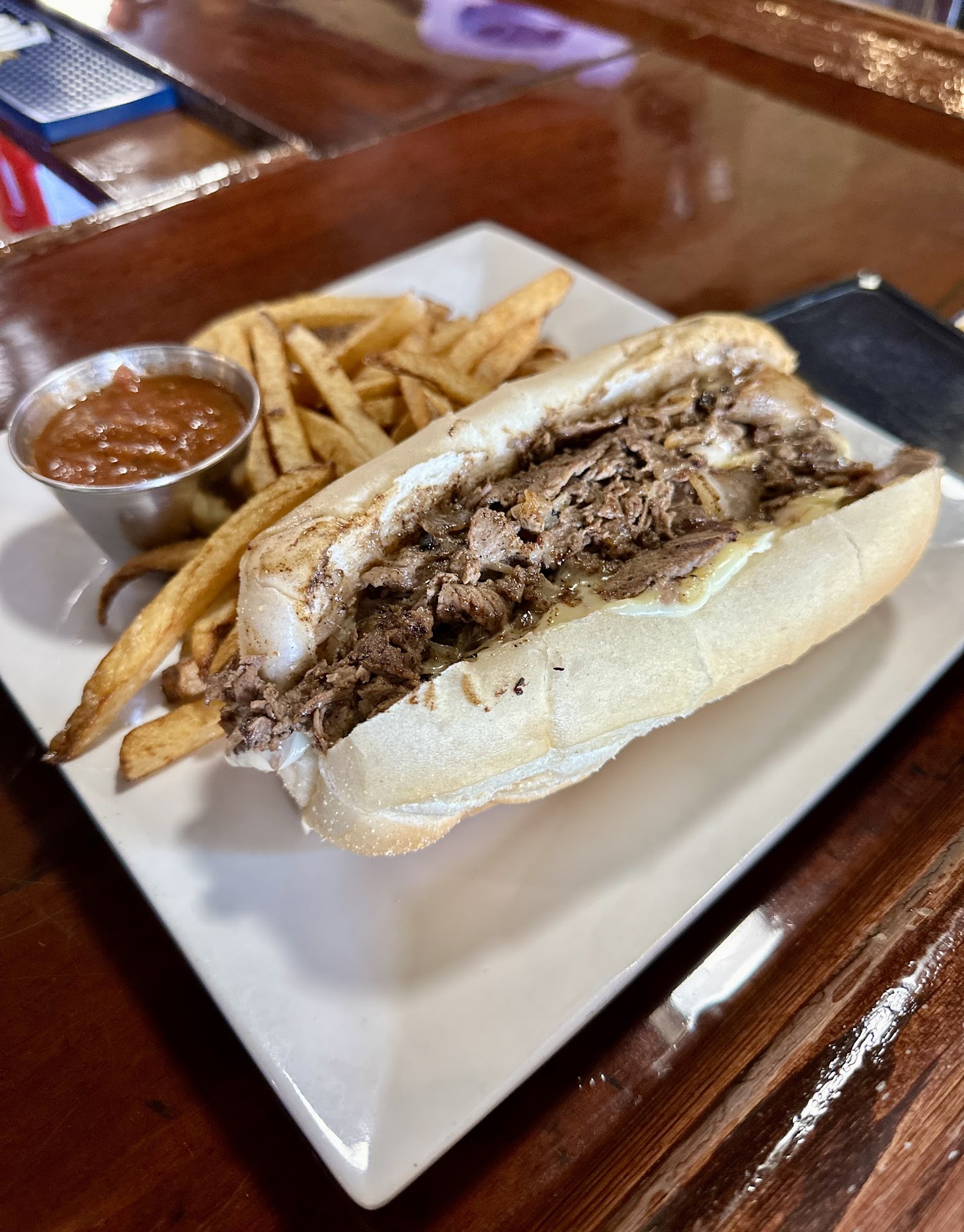 Amanda, the bartender was very pleasant. She recommended the cheese steak. It was delicious. Thin slice steak, covered in cheese on a nice soft roll. Fried onions were done perfectly. The sauce was not like anything I ever tasted before, very favorable. Accompanied with hand cut fries, which were very good. Perfect meal. I did not have high expectations due to the rural location, but I was extremely pleased and will definitely be back again. Well worth taking a trip...