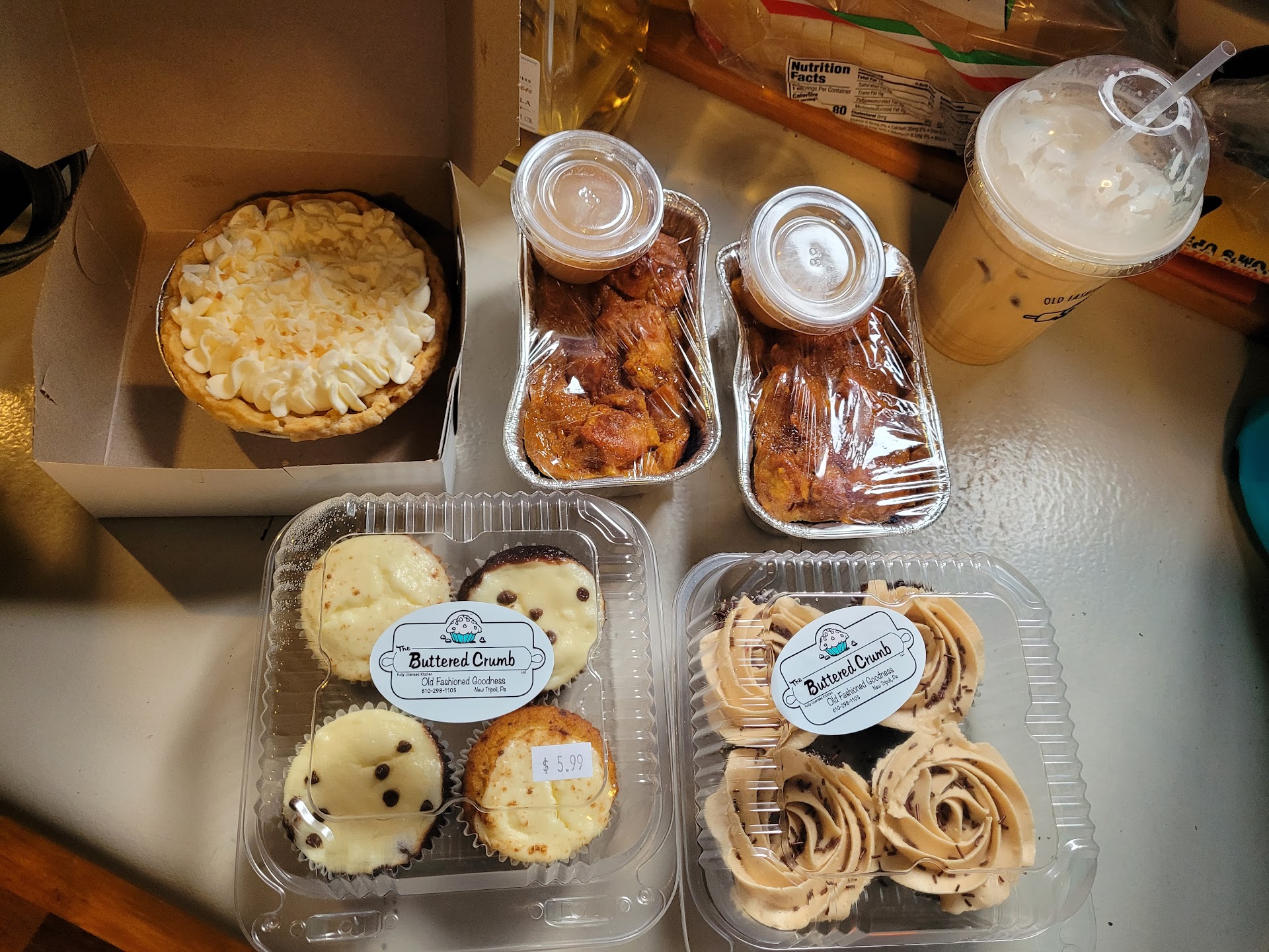 This bakery hit all points with the huge variety of baked goods: fruit pies, hand pies, cupcakes, donuts, cookies and cheesecake. I took a minute to look around. There are fresh made breakfast sandwiches as you walk in; breakfast burritos, eggs & meat on BRIOCHE plus a few others. $5.99 while they last. The business closes at two. ( check Facebook for updates) The staff was helpful.