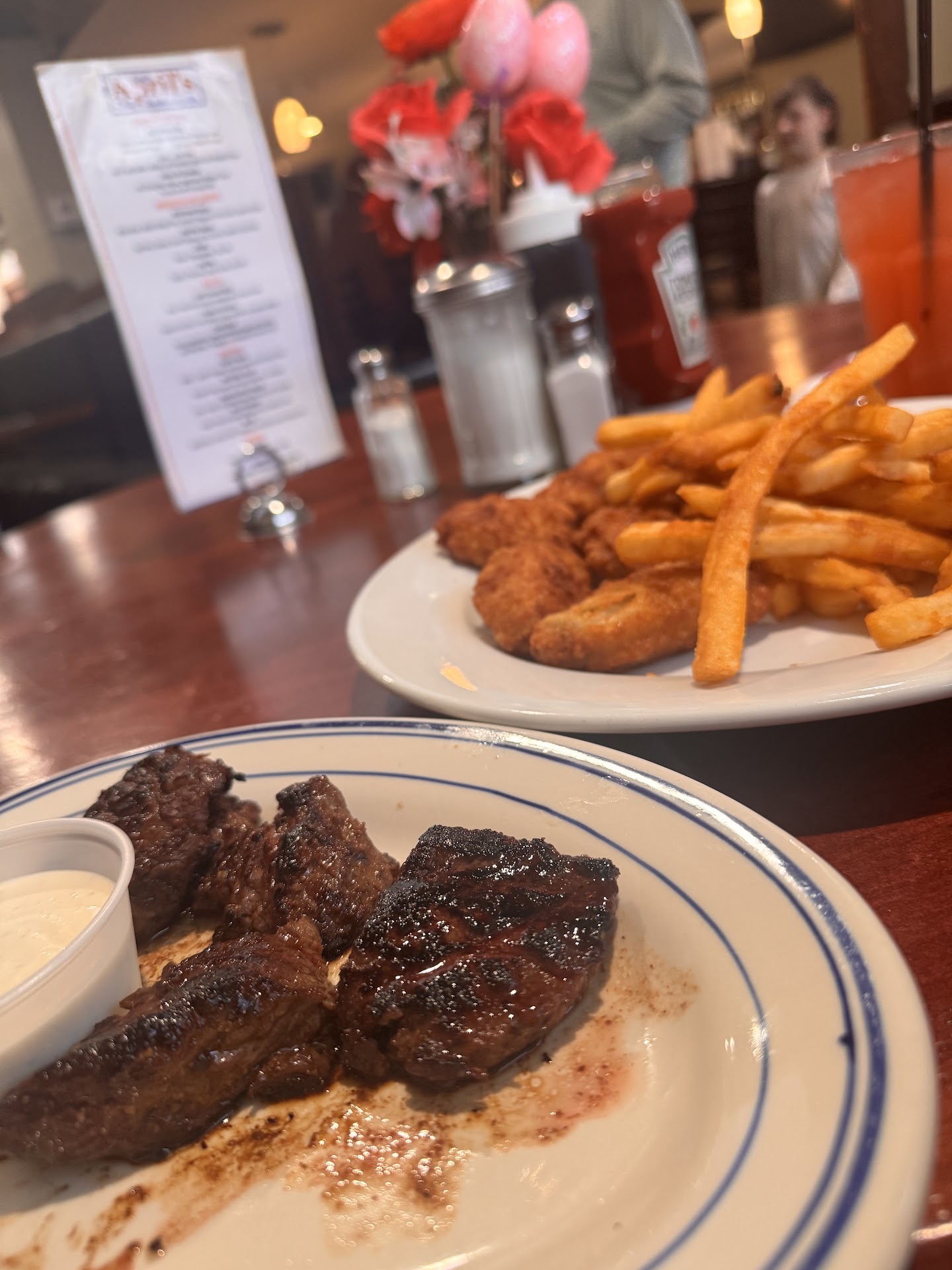 Very bizarre having like an American type of bar, traditional, and then going in and realizing PLACE CALLED APRIL'S IS LIKE A MEXICAN SPANISH BAR? They're also playing lots of Mexican and Spanish music.. not my cup...