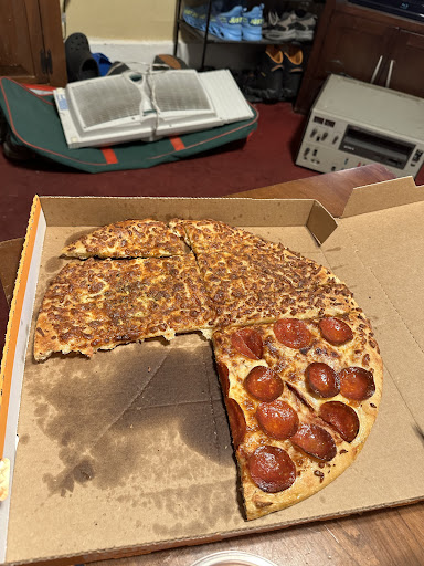 This review is for both Little Caesars and DoorDash, the delivery service. I ordered from here twice last week. Both times I created my own pizza with sausage, bacon, mushrooms, olives and extra cheese and both times they didn't add at least one of my toppings and my toppings slid off the edge slices during delivery. Creating your own pizza (toppings) cost much more than their regular pizzas because they charge by the toppings. I have spine, nerve, knee, hip and foot injuries making going up and down my 3 flights of stairs difficult, that's why I order most of the things I need or want online. Both on Little Caesars online ordering and later with doordash, under "delivery instructions", I checked the 'deliver in hand to door' and wrote to "Disabled person. Please ring doorbell for access to building and bring up to 3rd floor". One time it was left on my front porch in full view of a busy street, and I found out after the driver was gone. The next time the driver called to say he was here, and would I come down to get my food. Mind you he was speaking perfect English without an accent. I told him that I'm disabled and asked him to bring it up. He suddenly got an accent and said that he doesn't speak English. I asked him if he was at the front door, and, again without the accent, he said "yup." I buzzed the door 3 times for him to at least enter and leave inside, (as I've had packages stolen in the amount of time it takes me to walk down the stairs) but I didn't hear the downstairs door open. I made my way downstairs and the food was left on my outside stairs, like discarded food for anyone walking by on the sidewalk to just reach over and grab. I gave both of these drivers large tips, which you can't change (like you can with Uber eats) after the order. You're not given a choice about tipping only how much! I was a waitress most of my life and I almost always leave a good tip. However tipping first started decades ago as a way to shown appreciation for the level of service given, and it was expected and usual that if you received bad service you either left no tip or left a penny, which is considered an insult for bad service. I don't feel we should be forced to tip bad service and/or behavior. With Uber eats you do have a choice and can change the tip after delivery, not that Uber eats restaurant delivery is that much better, but if given a choice of delivery service choose Uber eats. At least you can decide about the tip and the drivers do deliver to door when requested. Unfortunately ordering online or by phone with Little Caesars, you're not given a choice and online there's nothing stating that it's not Little Caesars delivering. If you want Little Caesars pizza I suggest going to the restaurant yourself. That way you can make sure your order is correct. The pizza and crazy bread were very good though, and I don't...