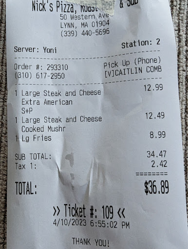 I regularly come here with my children, the atmosphere isn't the most inviting but you can definitely have a seat and eat there if you like. I've only ordered pizza, fries, chicken, and a few subs there. The food is good, the chef is a weapon back there! Fast, clean, and the food off the grille is very good! Pizza is a bit too greasy sometimes but hey it's not bad on my stomach. When I order delivery it's quite a different experience. There is a young woman that answers the phone in a prank style?! I have no idea what to call it, literally doesn't even say the name of the business just start yelling at you or screaming hello or simply says, "IT'S PLAH" or something to that effect. Totally unprofessional, makes me have to double check my food etc it's such a shame. When talking to Nick's pizza on the phone you'll sometimes get a bad experience and nobody will try to remedy the situation. I had to call multiple times to reach someone besides the pranker. Although when I finally did someone else apologized and took my order. I'm a father ordering food for my children to eat for dinner bc I'm tired from a long day, no semantics about my kids or their food. It was totally ridiculous. I hope Nick's learns from this bc 90% of the professionals I know would hang up if they called a business and were greeted in such an unprofessional manner, Nick's just happened to be the closest place at the time. There's is one person at the front that does a fantastic job and she is the one who remedied the situation so thank her very much. If it weren't for her I would've been calling...